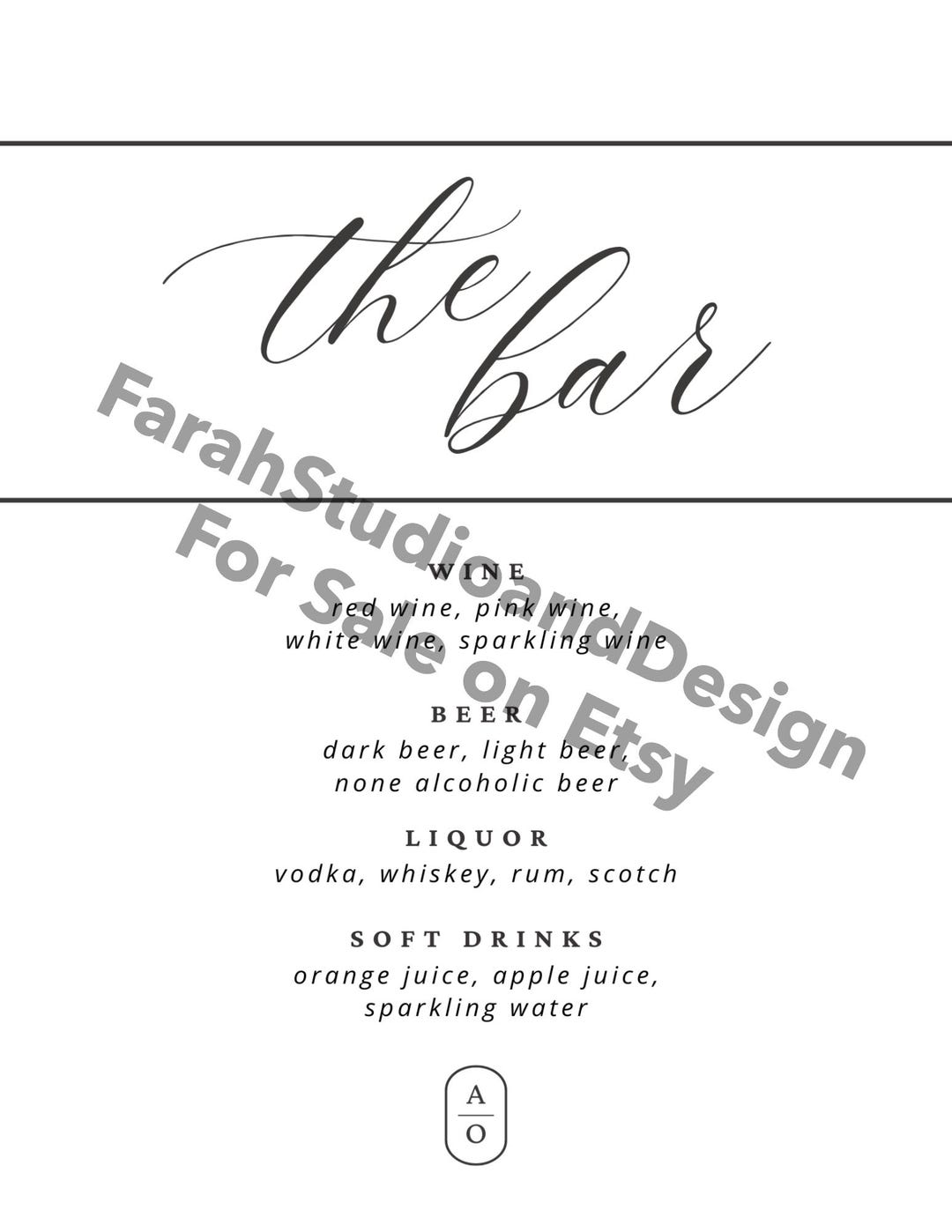 Modern Bar Sign Template Wedding Bar Sign Printable Editable Etsy
