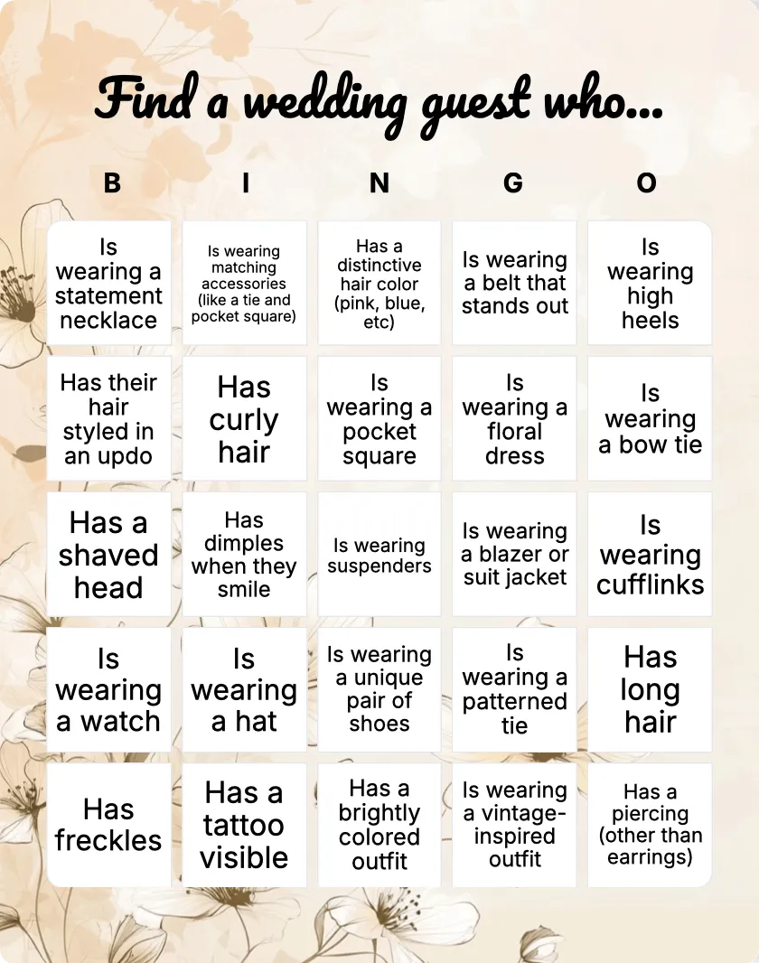Wedding Bingo: Printable Customizable Bingo Card Creator