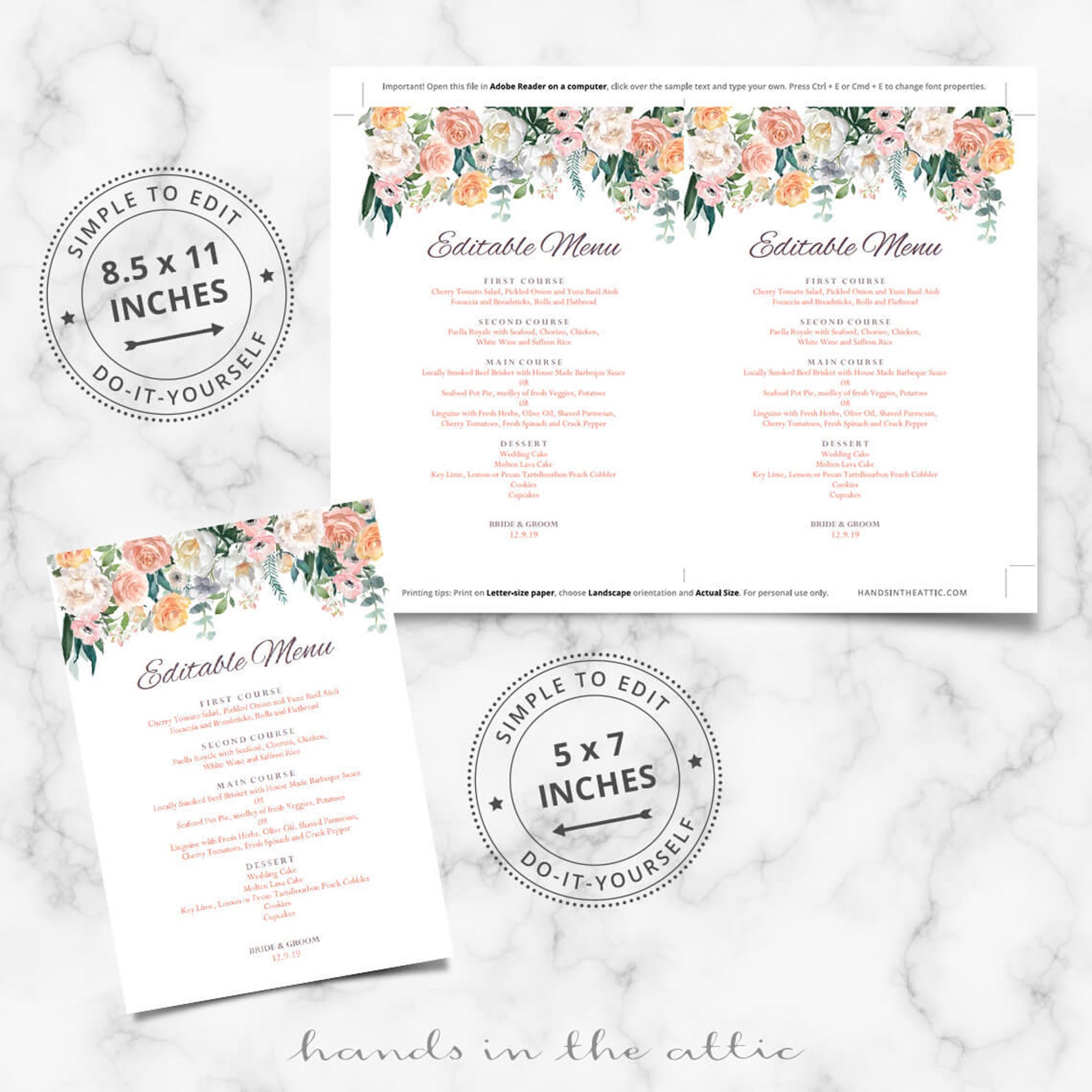 Wedding Buffet Menu Cards Floral Diy Template Wedding Dinner Etsy
