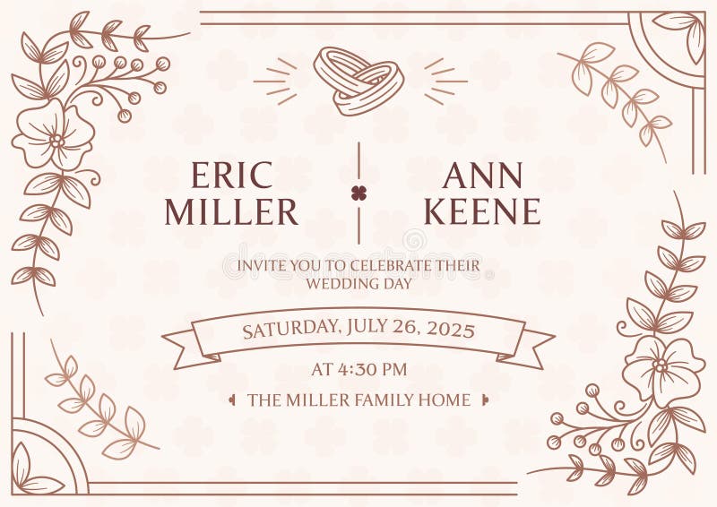 Floral Invitation Vintage Wedding Certificate Stock Illustration