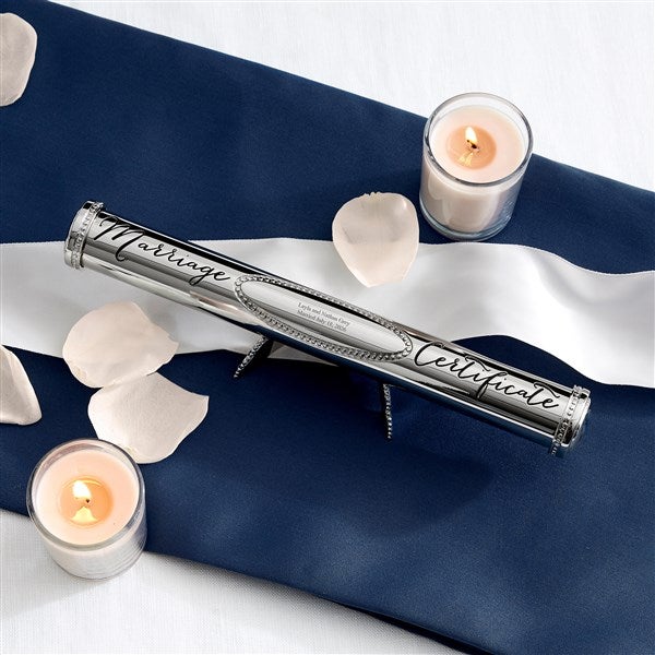 Custom Engraved Silver Personalised Wedding Certificate Case with Disp