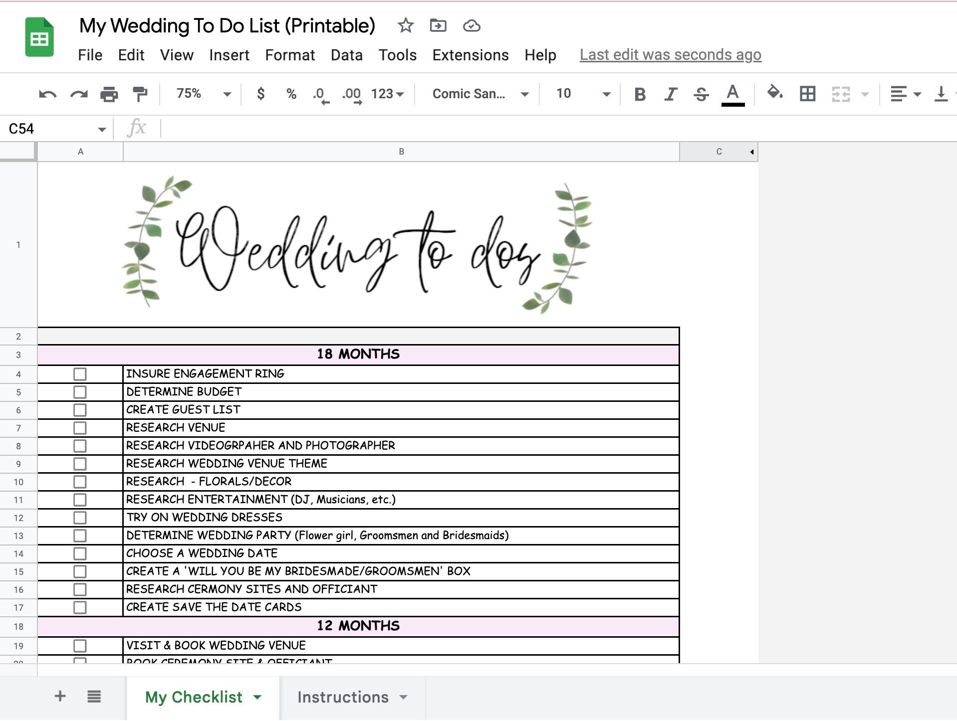 Wedding Checklist Printable and Digital Wedding Checklist Canva