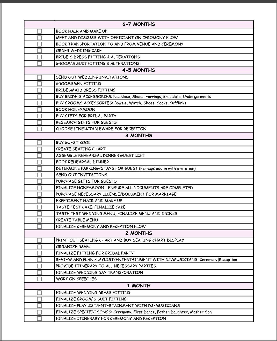 Wedding Checklist Printable Template