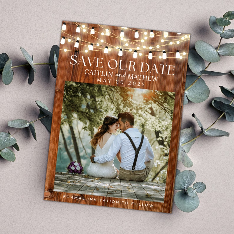 Western Save the Date Announcement Template Barnwood and Lights Wedding