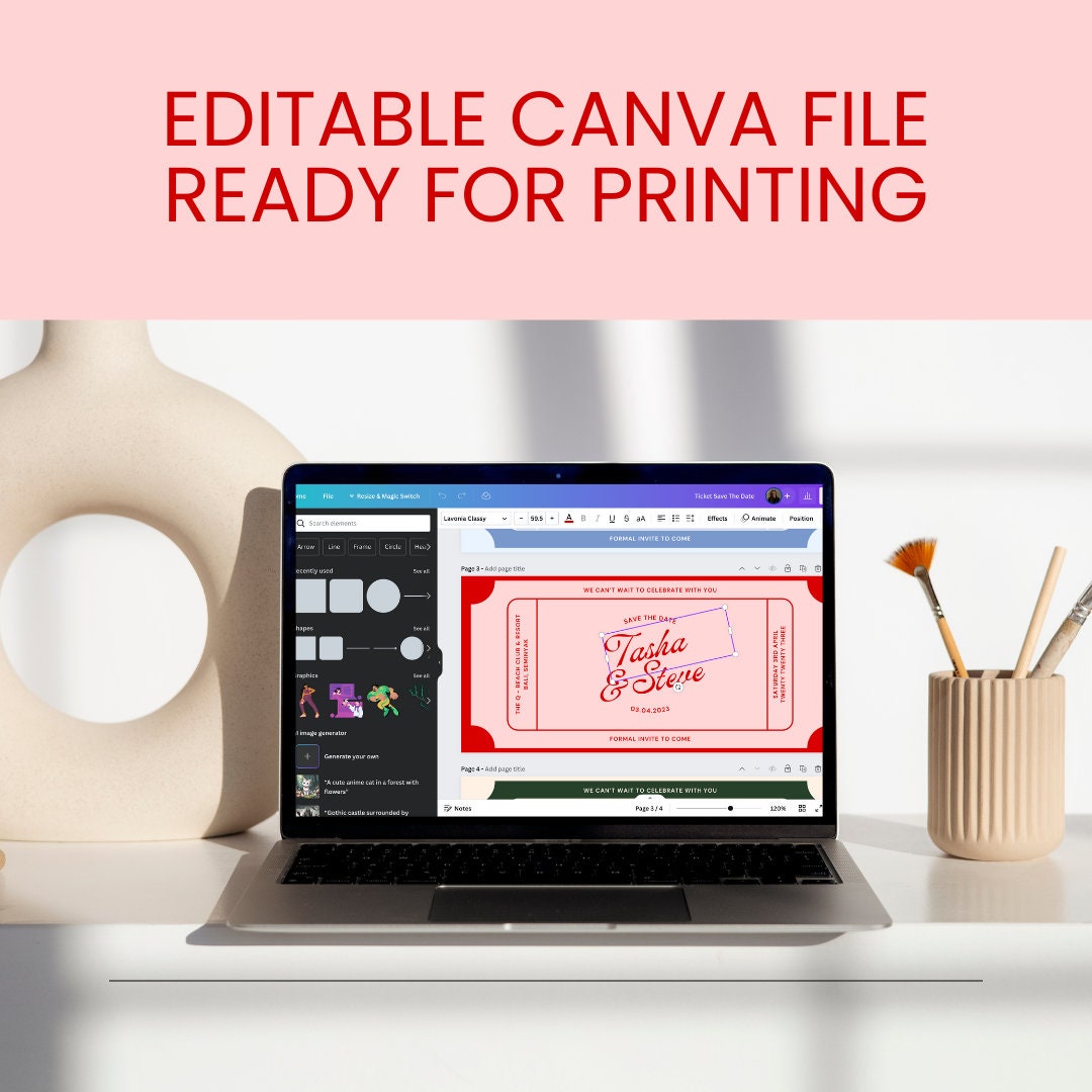 Ticket Save the Date Template Digital Download DIY Wedding Date