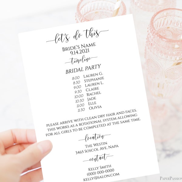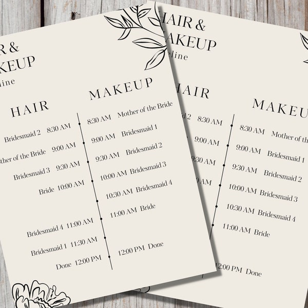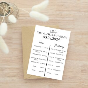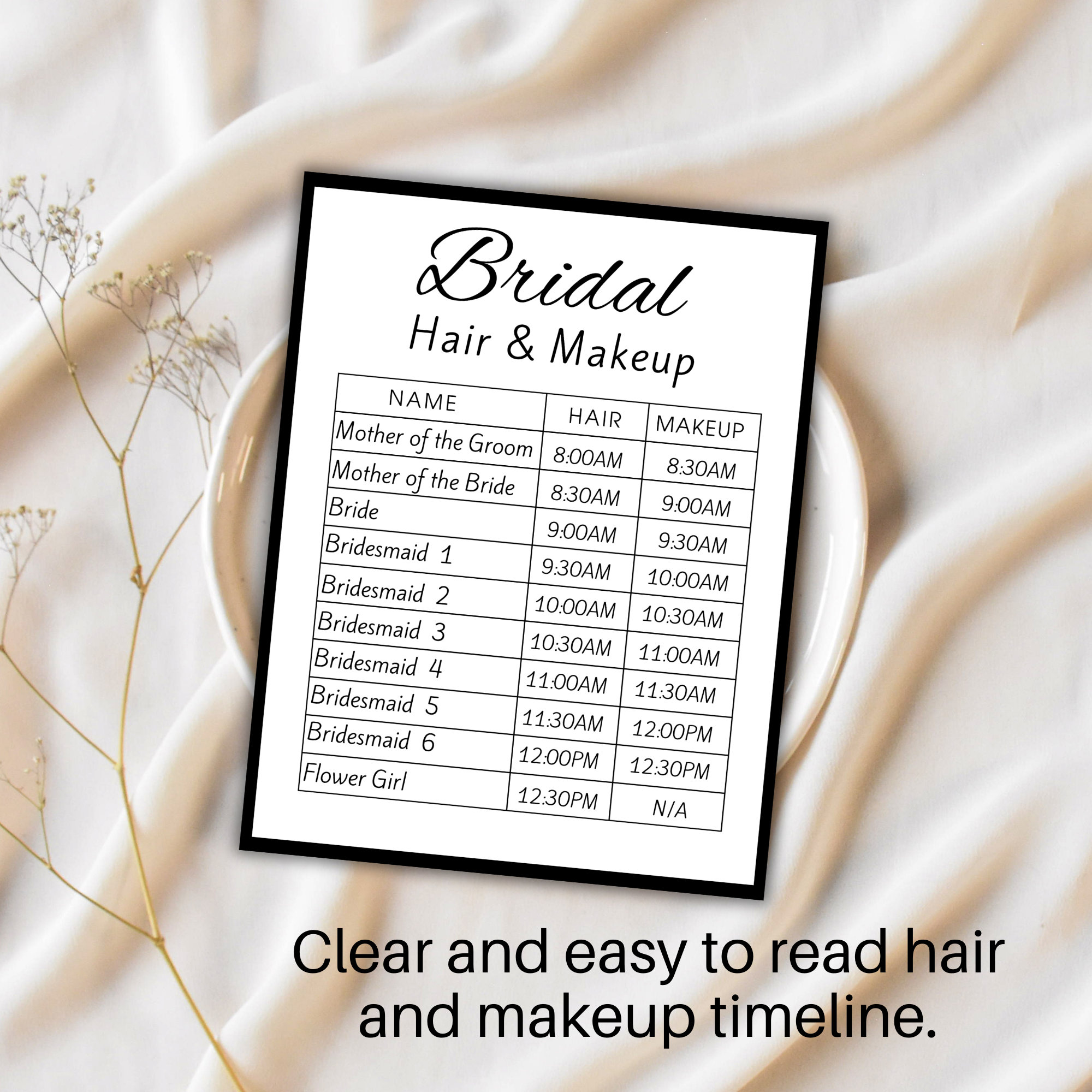 Wedding Hair and Makeup Timeline Template Minimalist Bridal Party