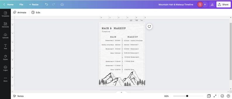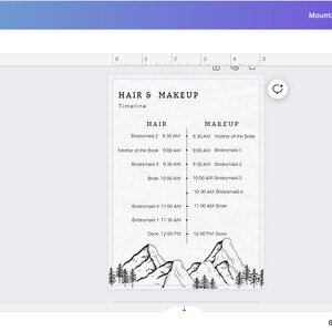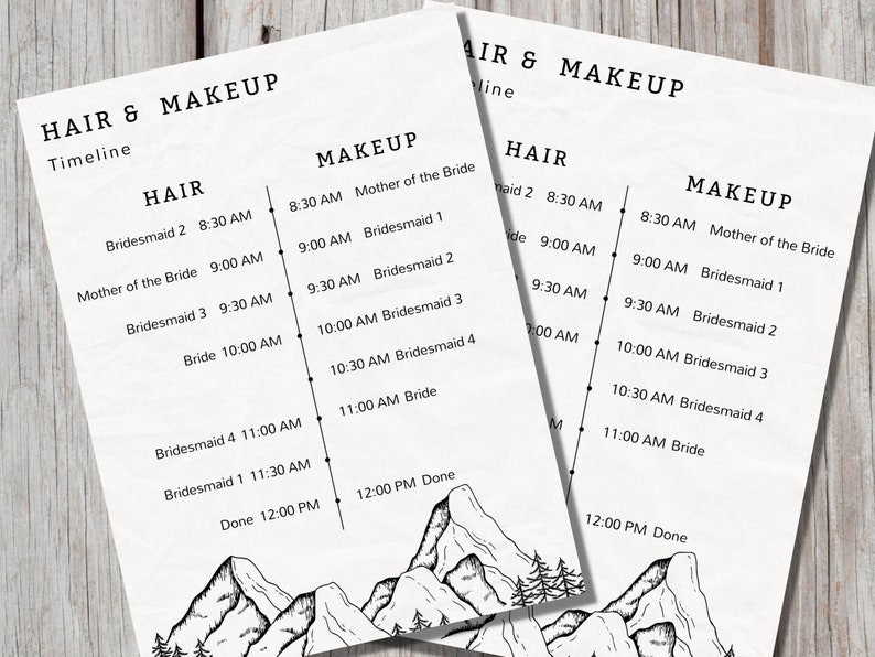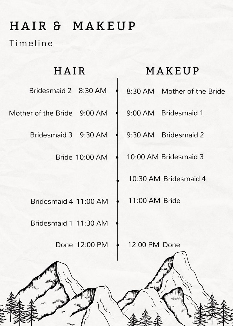 Mountain Wedding Hair Makeup Timeline Template Etsy