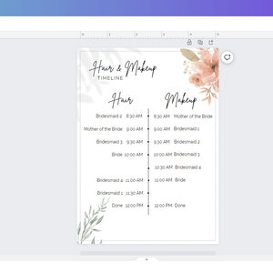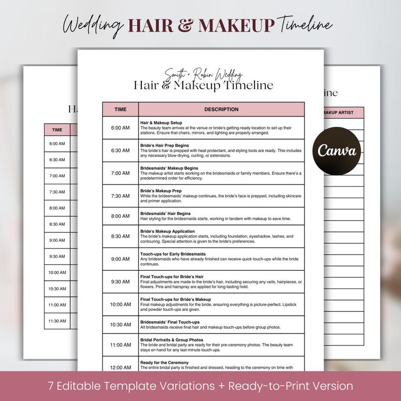 Romantic Wedding Hair Makeup Timeline Template Etsy