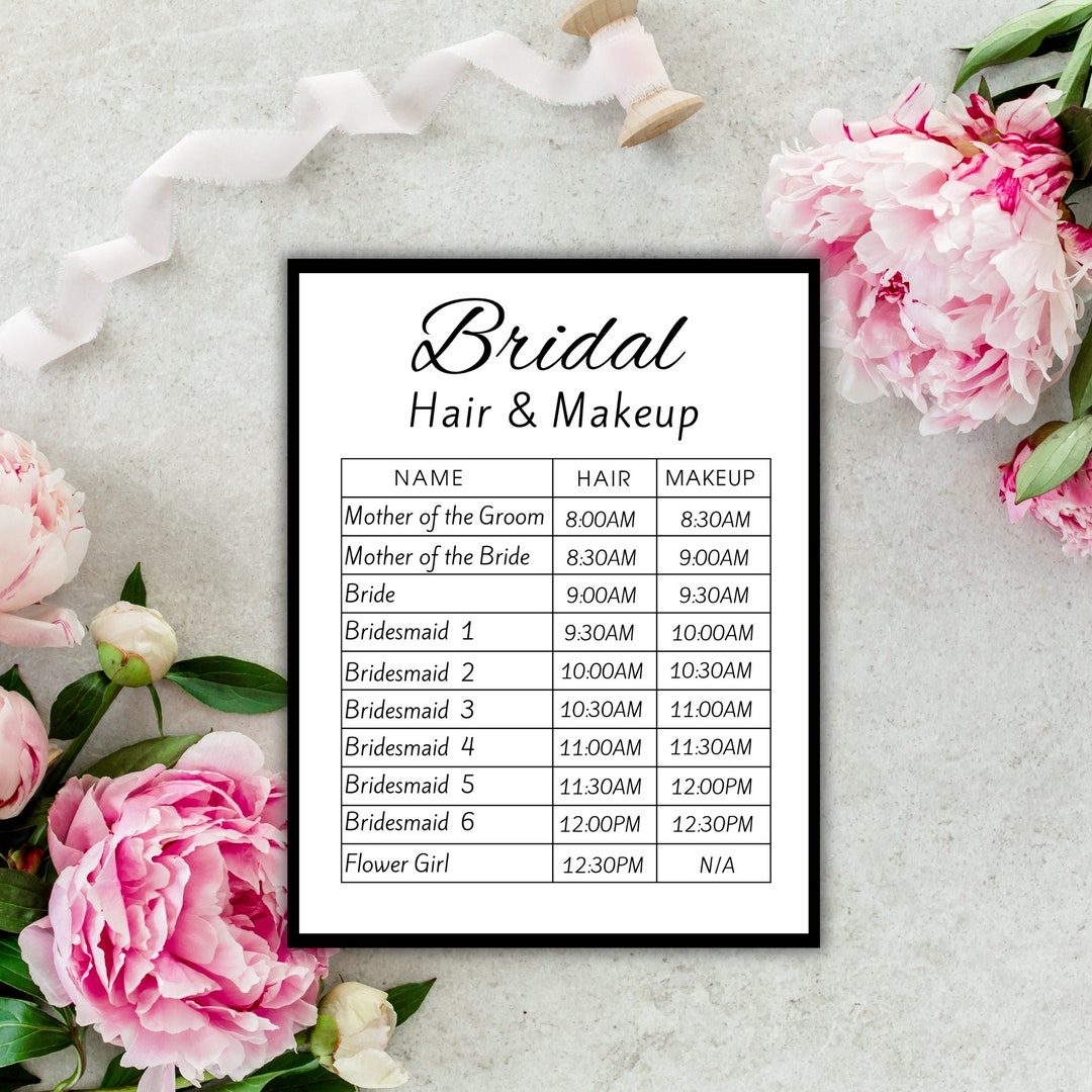 Hair and Makeup Timeline Printable Wedding Planning Wedding Day