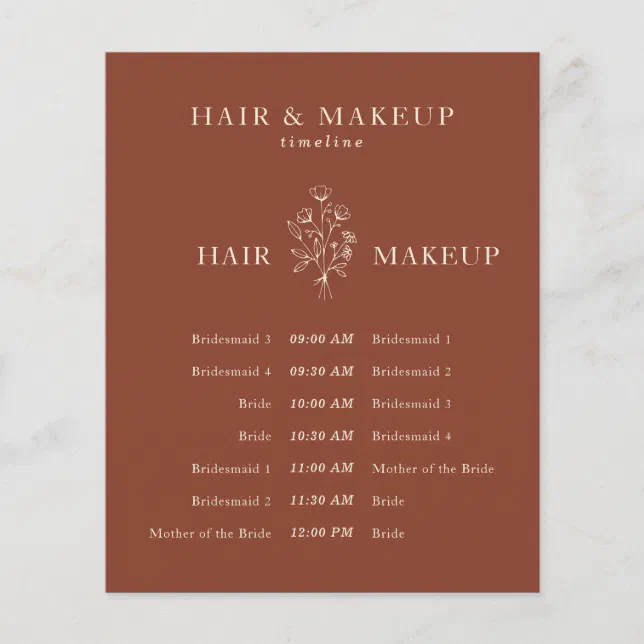 Terracotta Budget Wedding Hair Makeup Timeline Flyer Zazzle