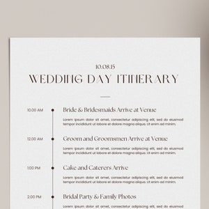 Editable wedding day timeline bridesmaids itinerary template wedding
