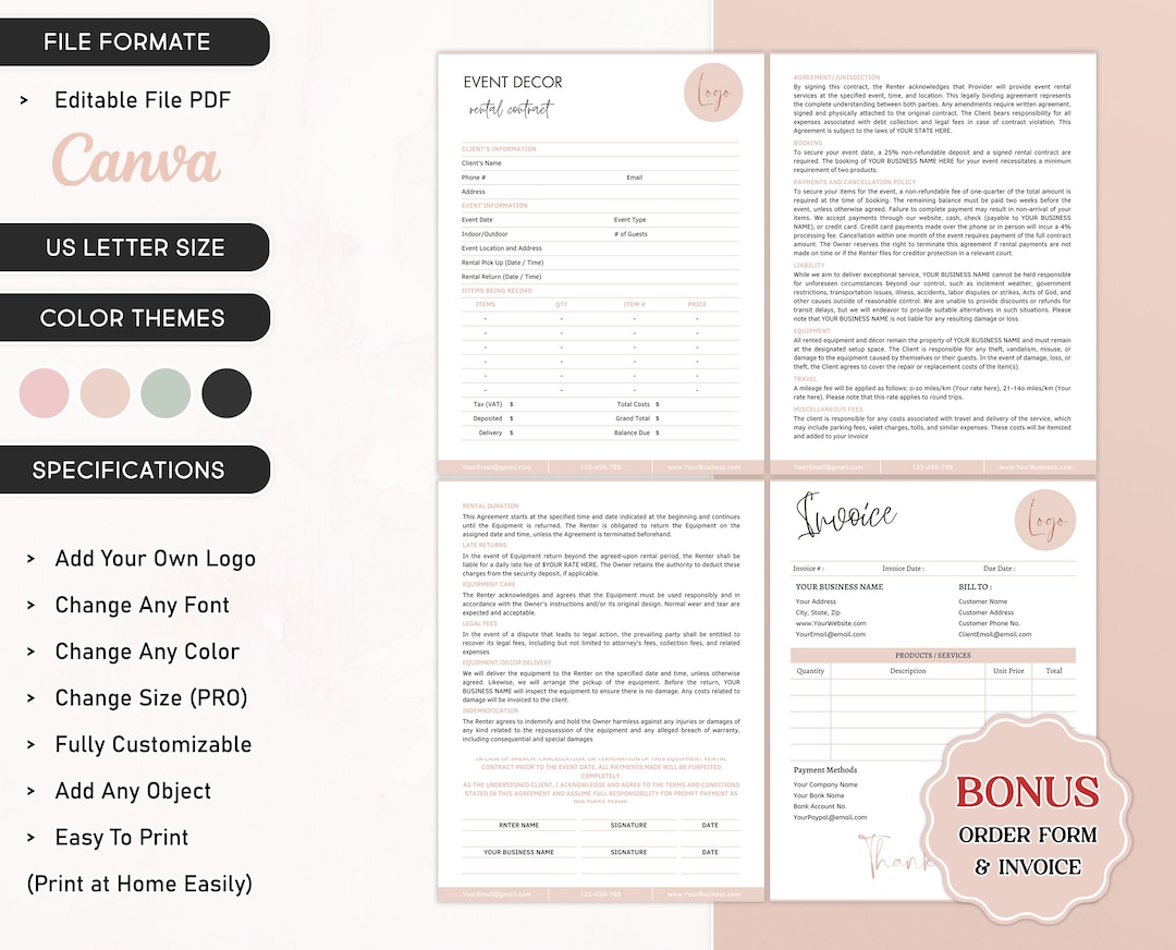 Event Decor Rental Contract Editable Party Wedding Decor Rental