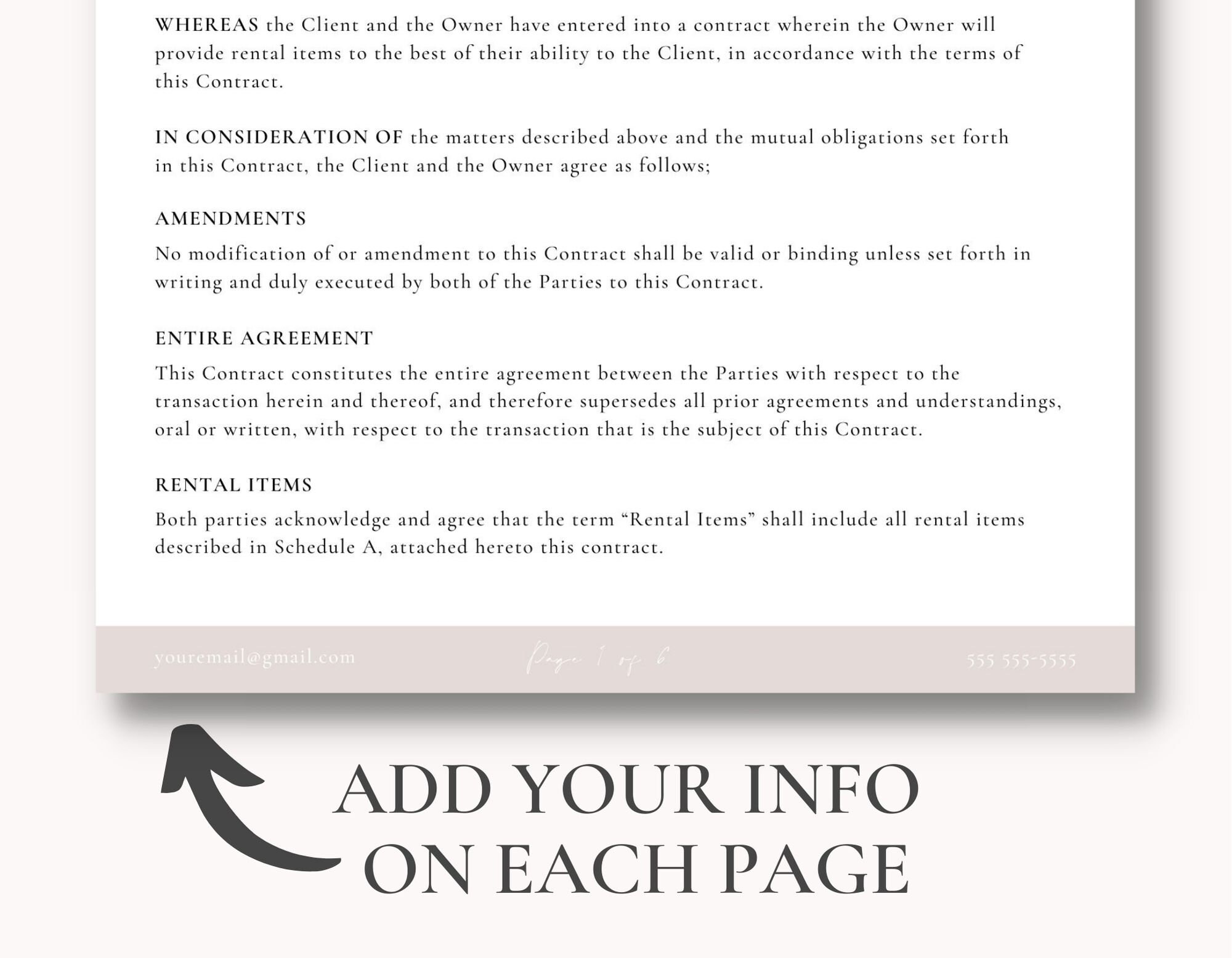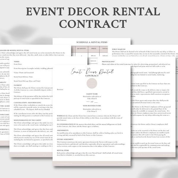 Event Decor Rental Contract Event Decor Rental Agreement Etsy