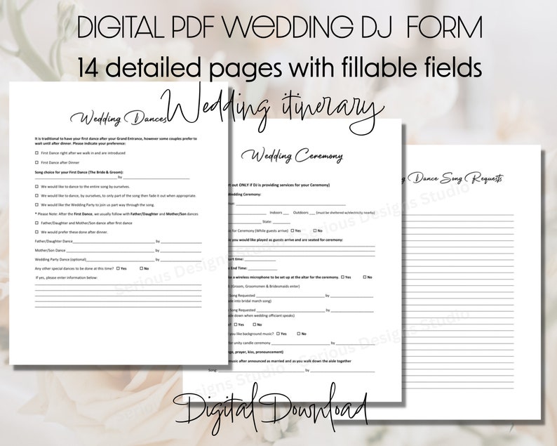 DJ Wedding Template Fillable Wedding Form Printable PDF Digital
