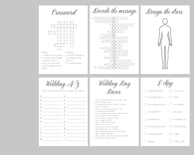 Build Your Own Wedding Activity Pack 15 Activities to Choose From