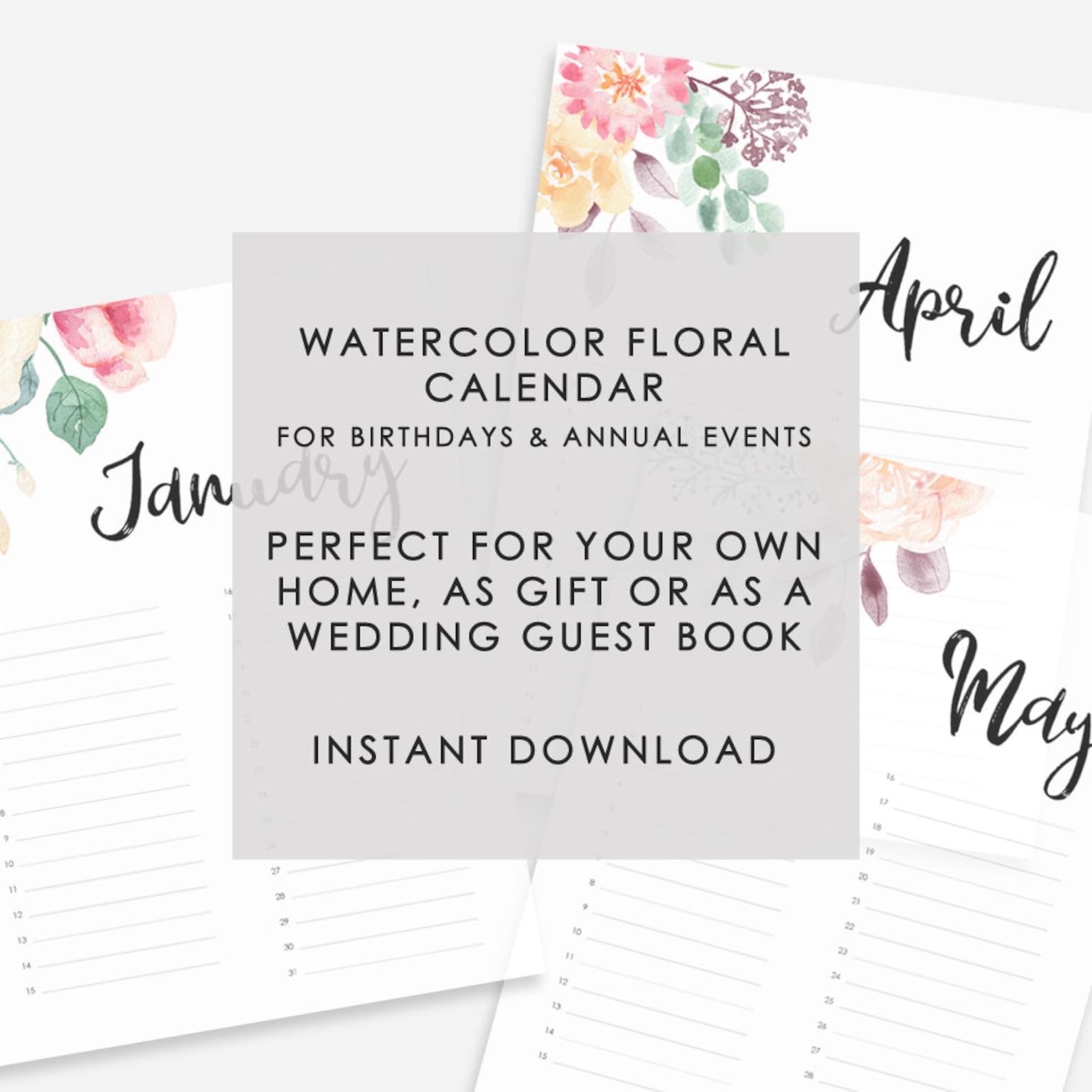 Wedding Guest Book Birthday Calendar Printable Wedding Guest Etsy Canada