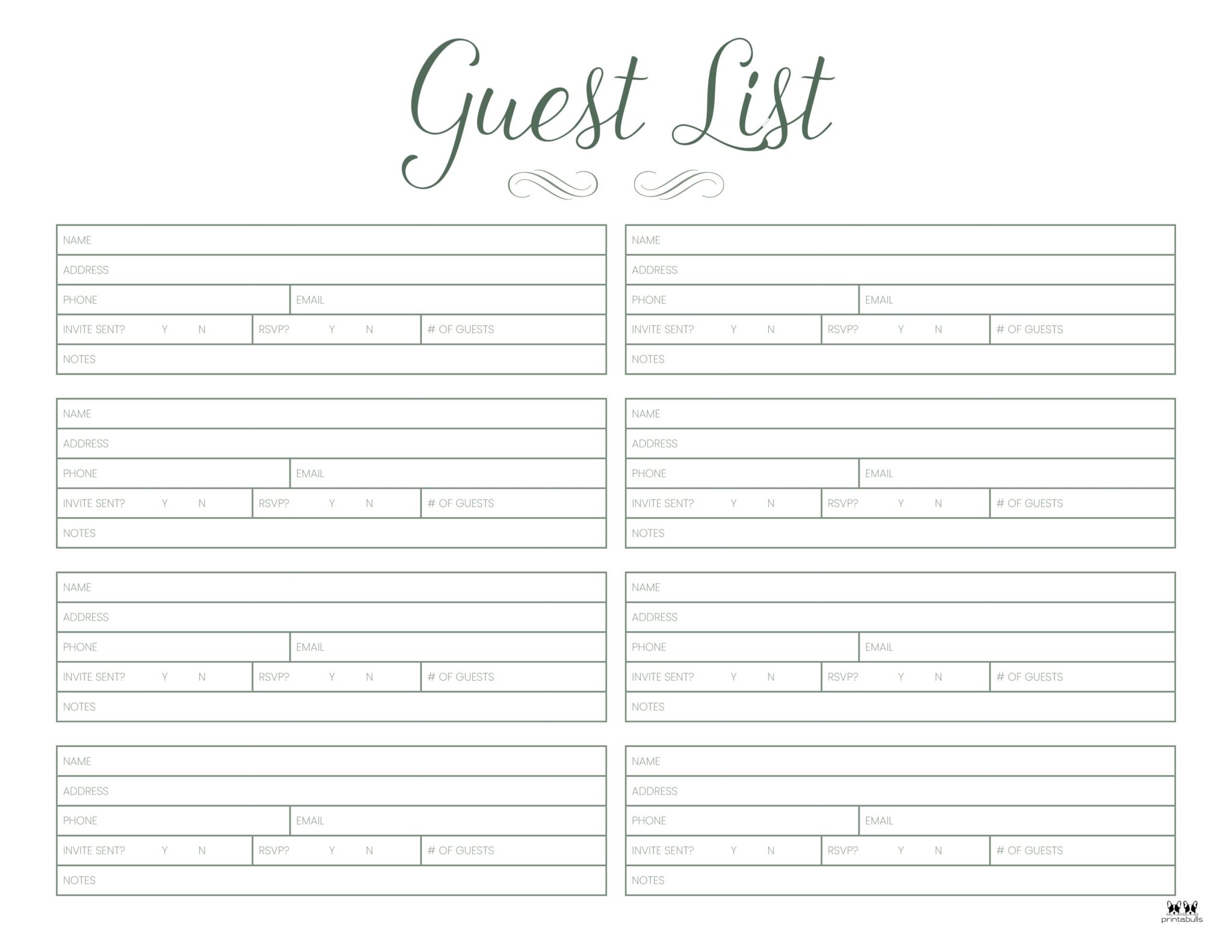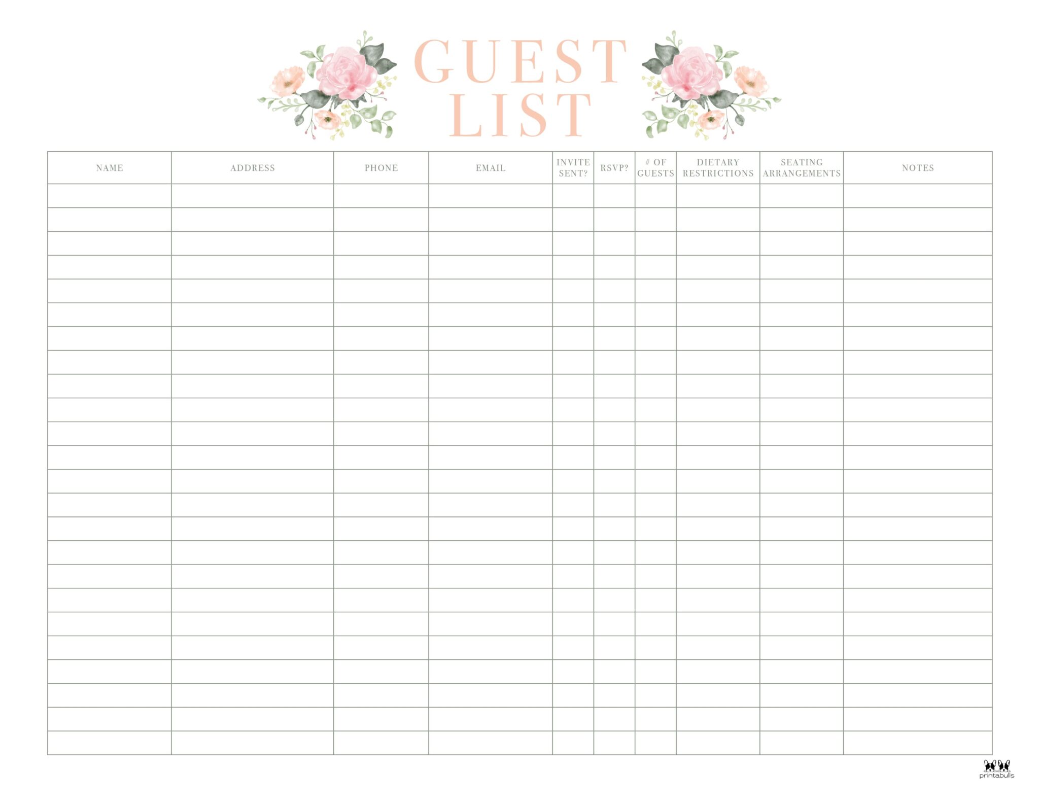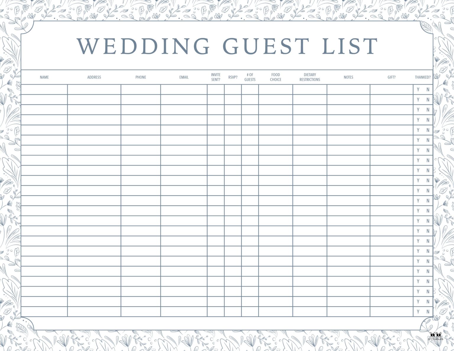 Wedding Guest List Templates 20 FREE Lists Printabulls