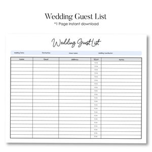 Wedding Guest List Tracker Printable Guest Planner Template Editable
