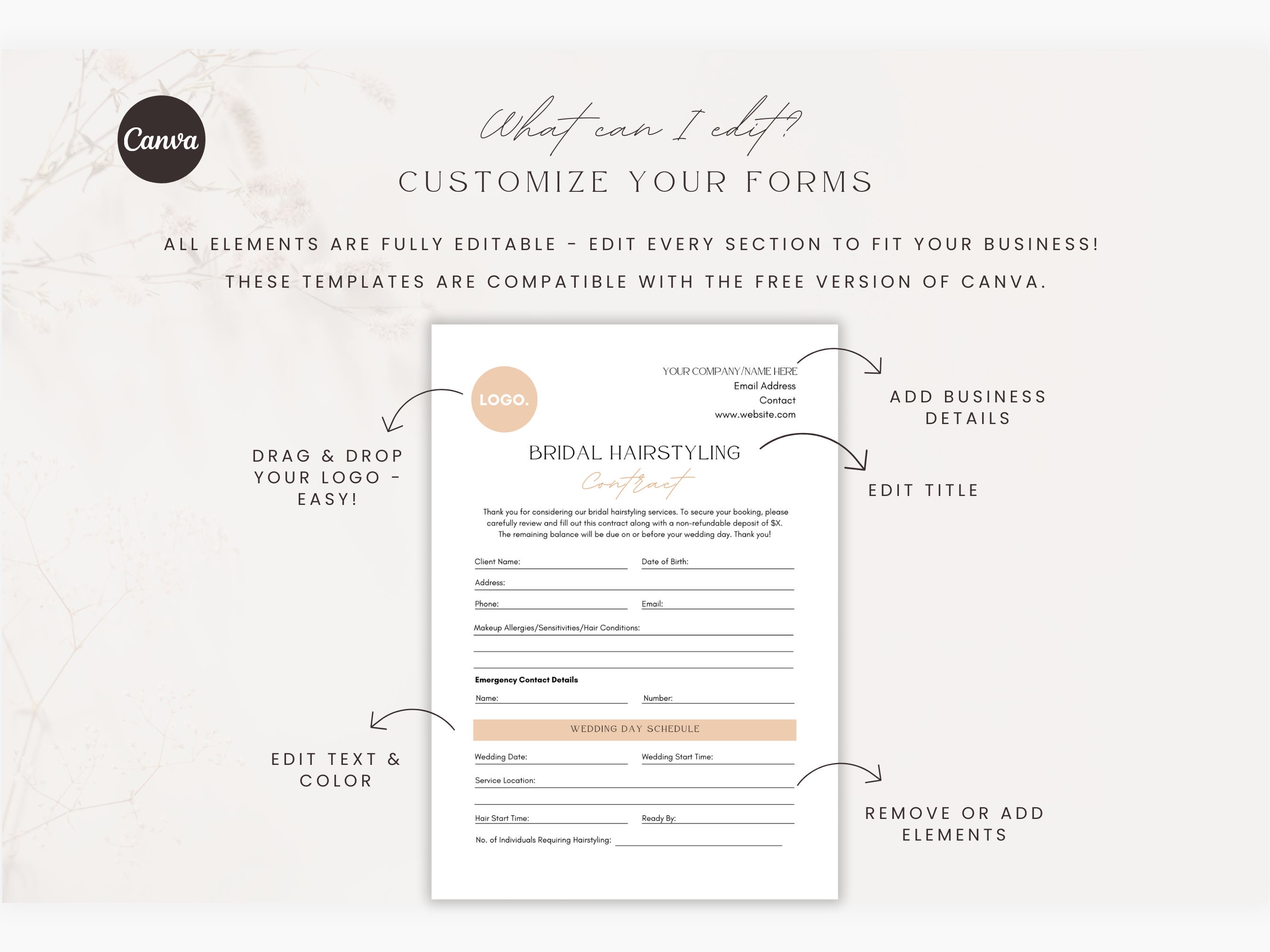 Editable bridal makeup and hair contract template i wedding contract i