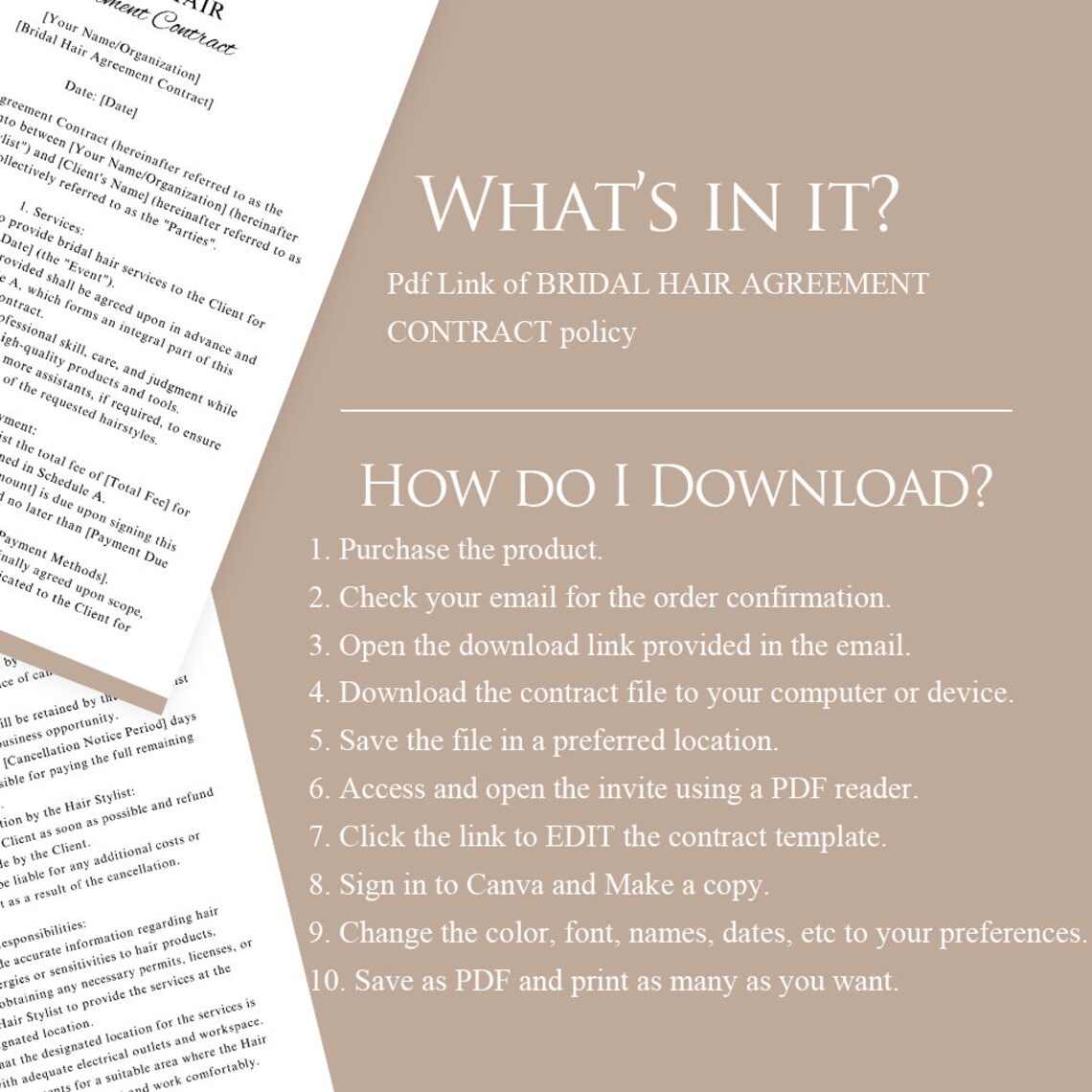 Bridal Hair Contract Template Editable Wedding Hair Contract Template