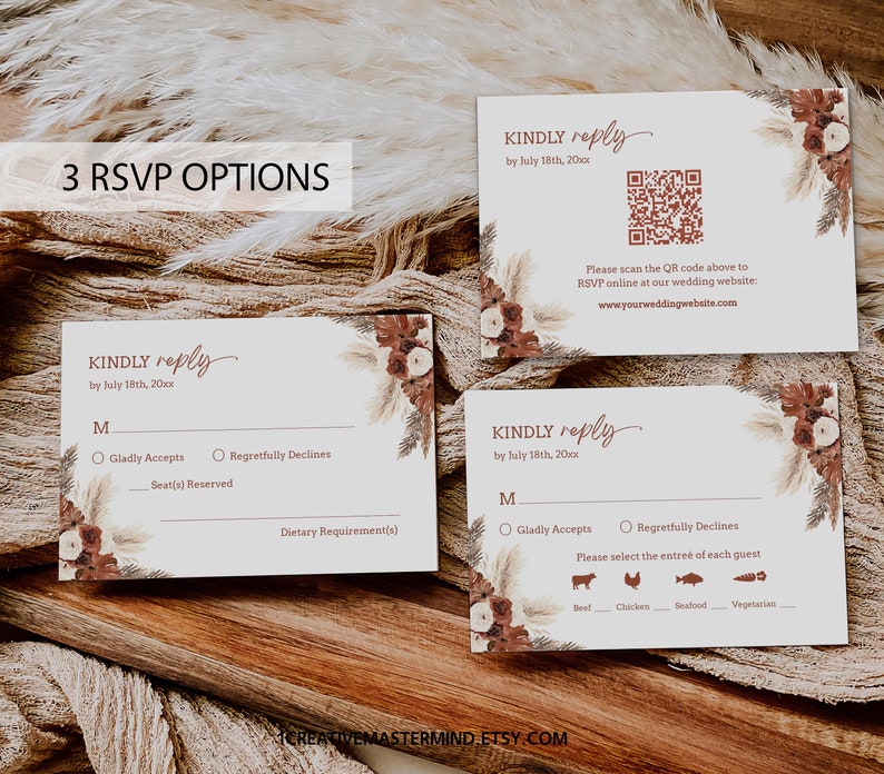 Rust Terracotta Boho Wedding Invitation Suite Templates Etsy