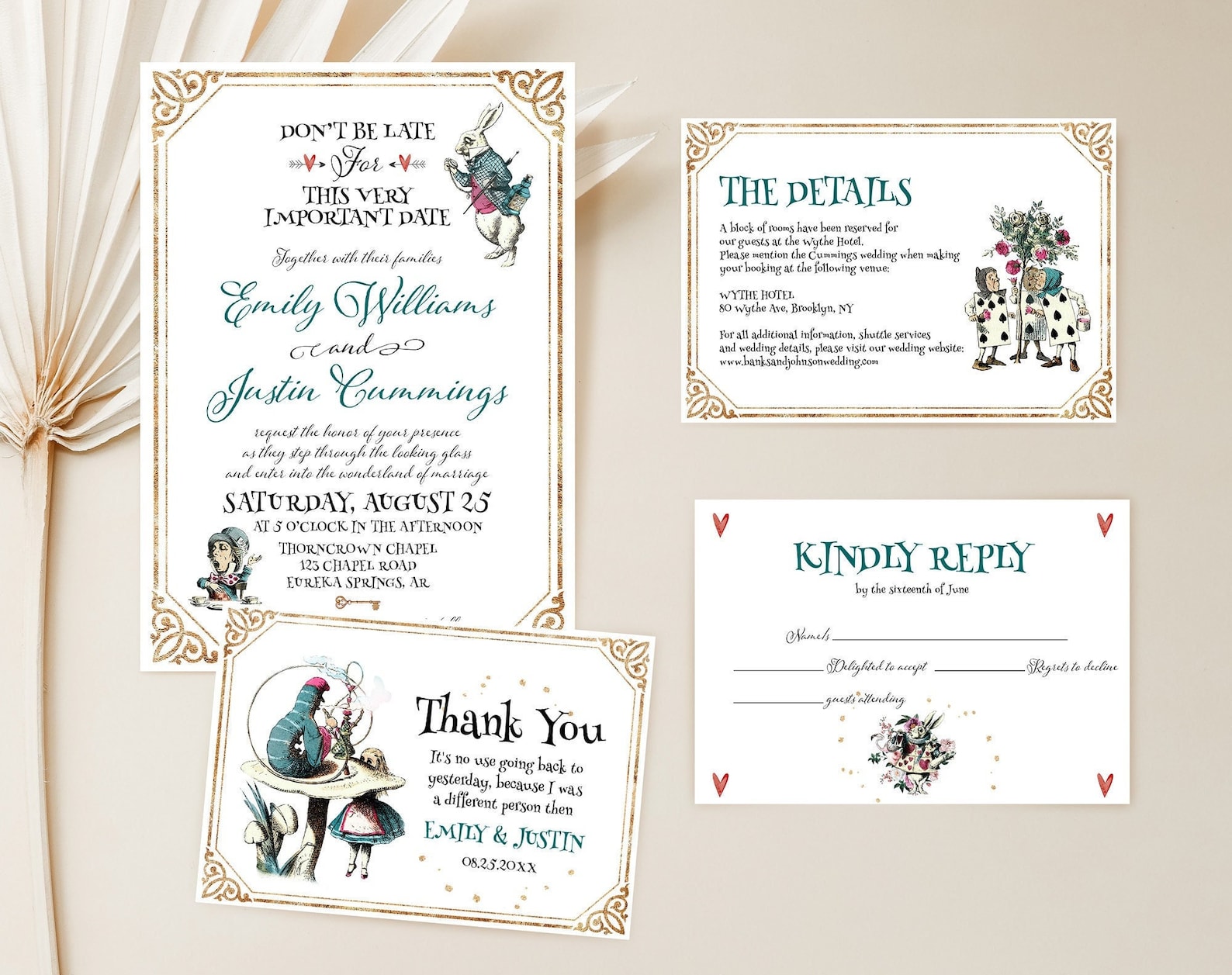 Alice in Wonderland Wedding Invitation Suite Templates Alice Etsy