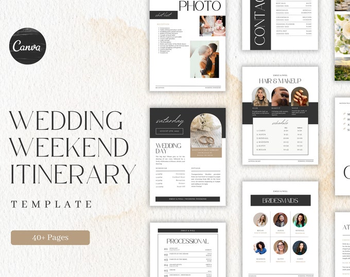 Wedding Itinerary Template 60 Editable Template CA canva Etsy