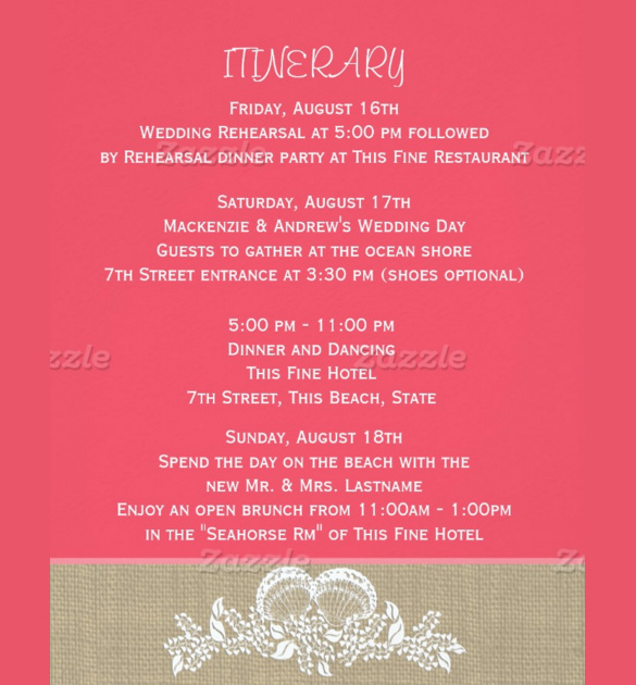 Wedding Itinerary Template 11 Free Word PDF Documents Download