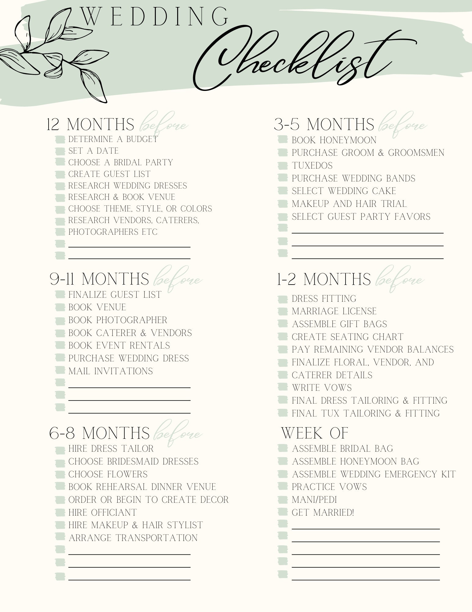 Printable Wedding Checklist Wedding Checklist Digital Download