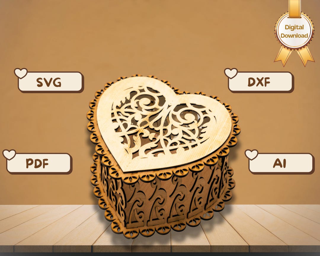 Wooden Heart Jewelry Box SVG Laser Cut Wedding Love Story Template