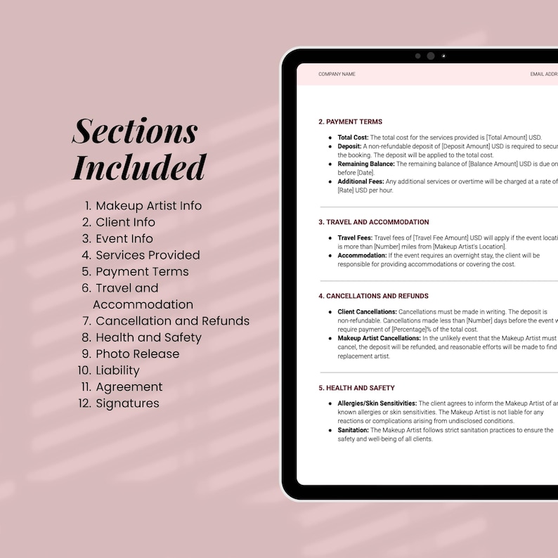 Bridal Makeup Artist Contract Template for Google Docs Contract