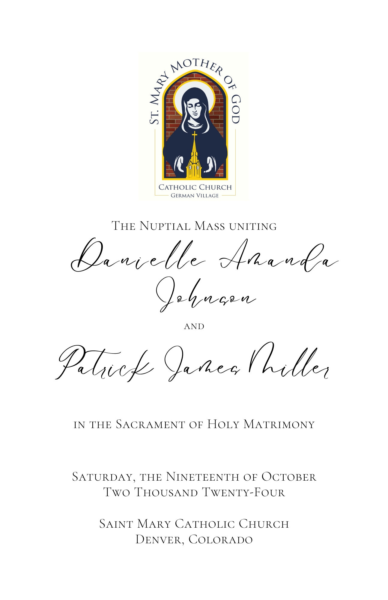 Catholic Wedding Mass Program Booklet (full Mass) Trifold Catholic