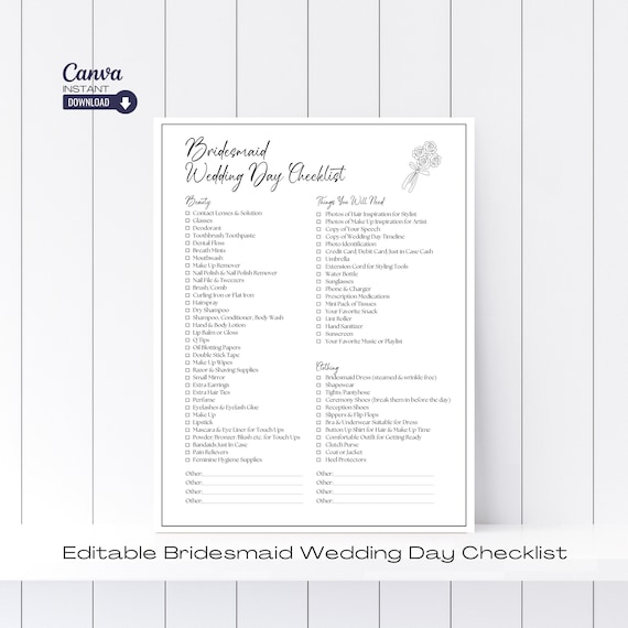 Wedding Checklist Editable Printable Instant Download Wedding