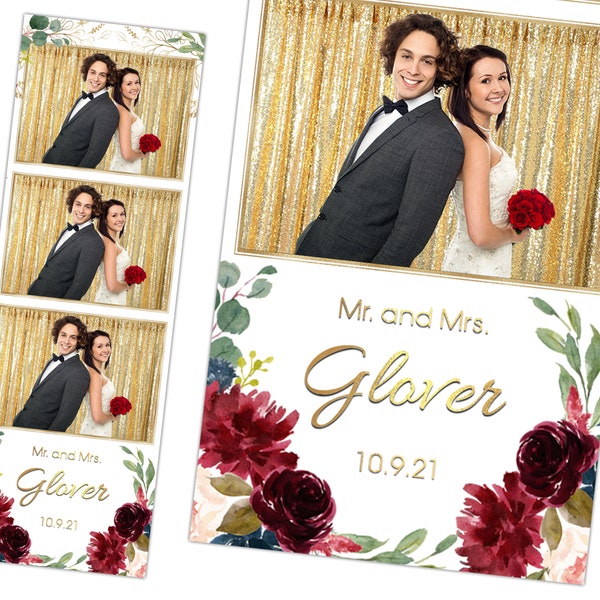 Wedding Photobooth 2x6 Template Burgundy and Blush Floral Etsy