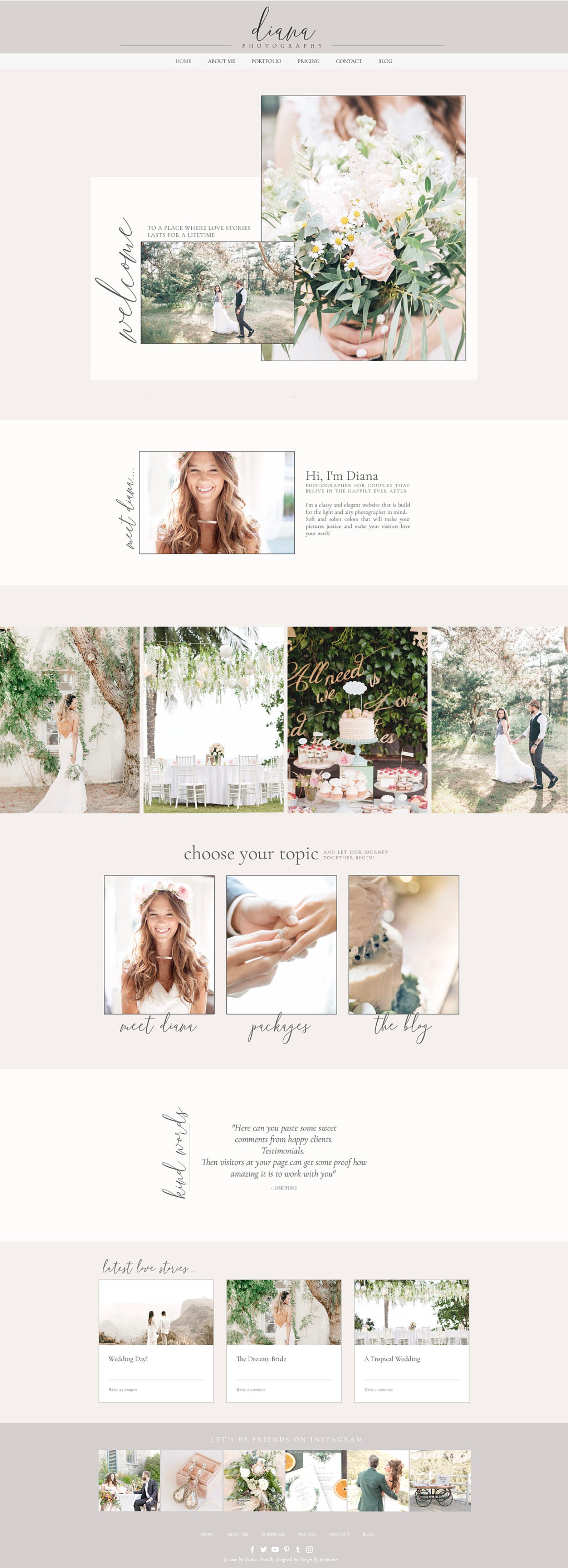 Website template for wedding photographers showit website template
