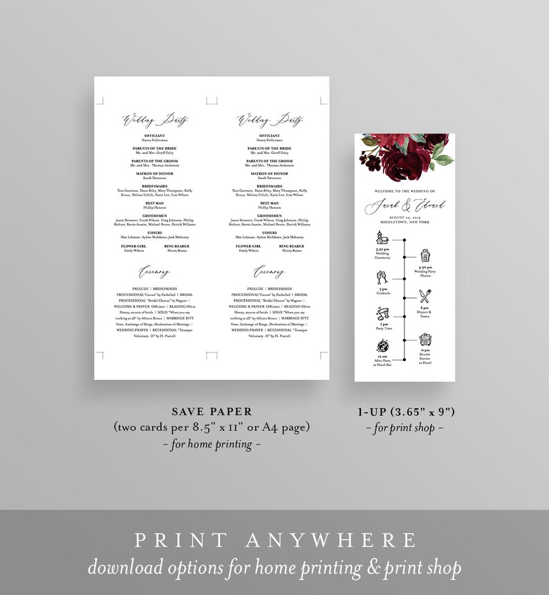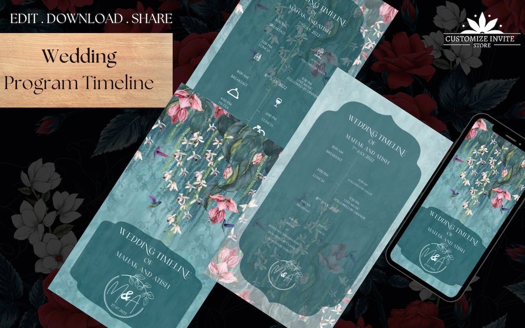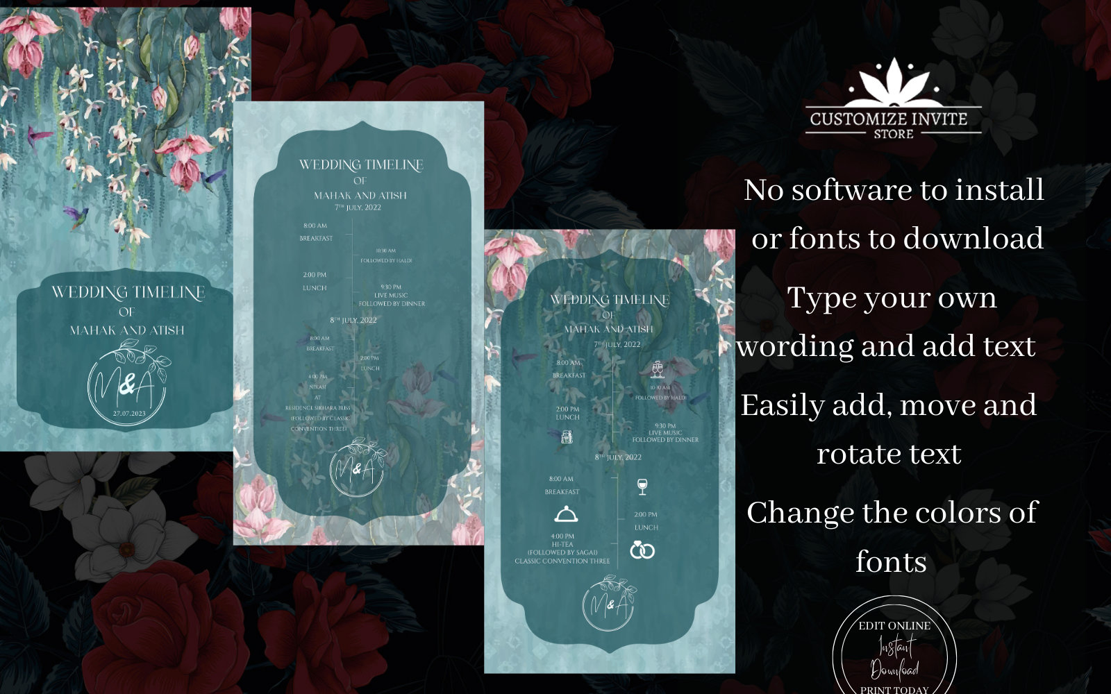 Wedding Program Timeline Template Fully Editable DIY Wedding Program