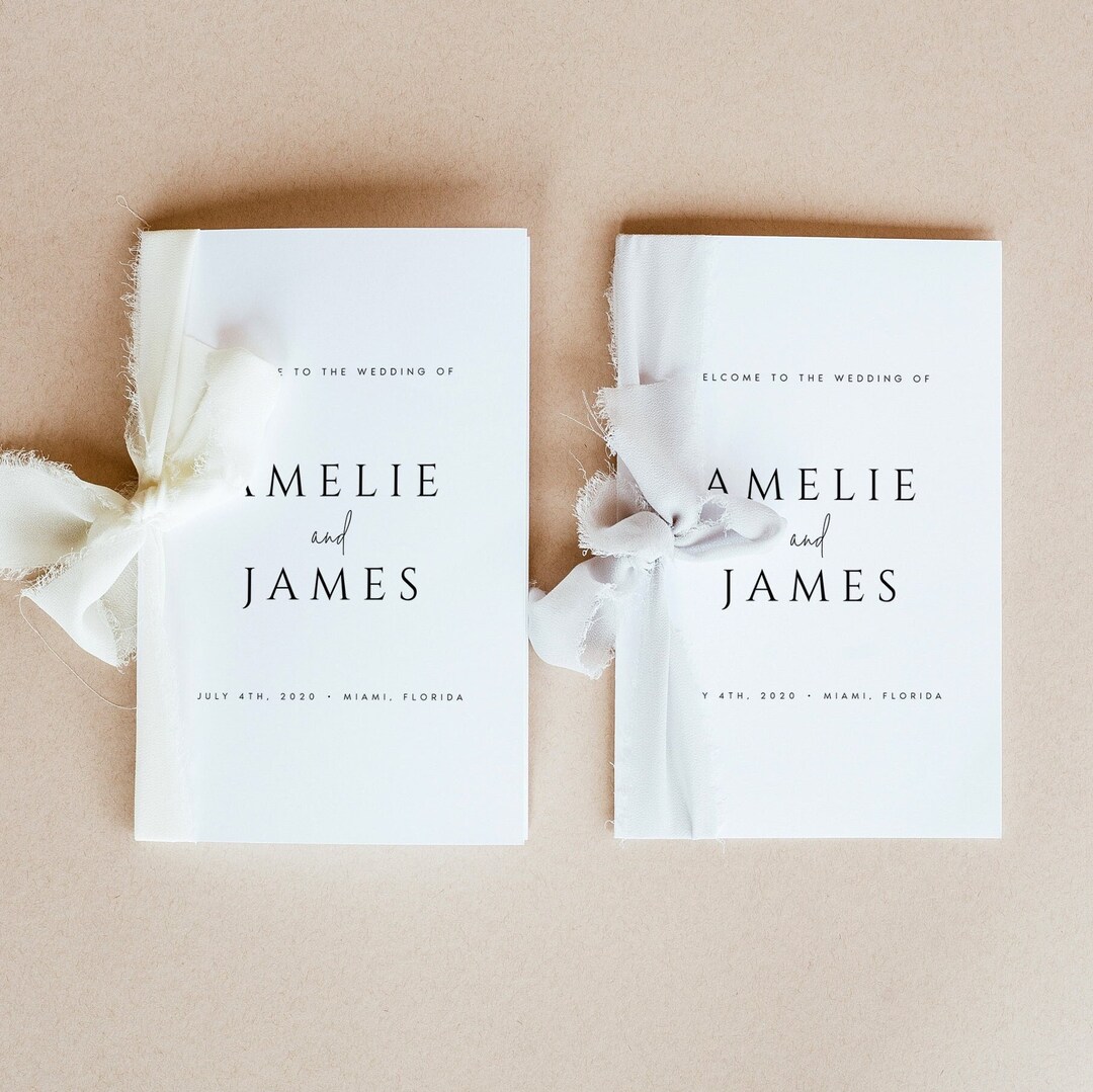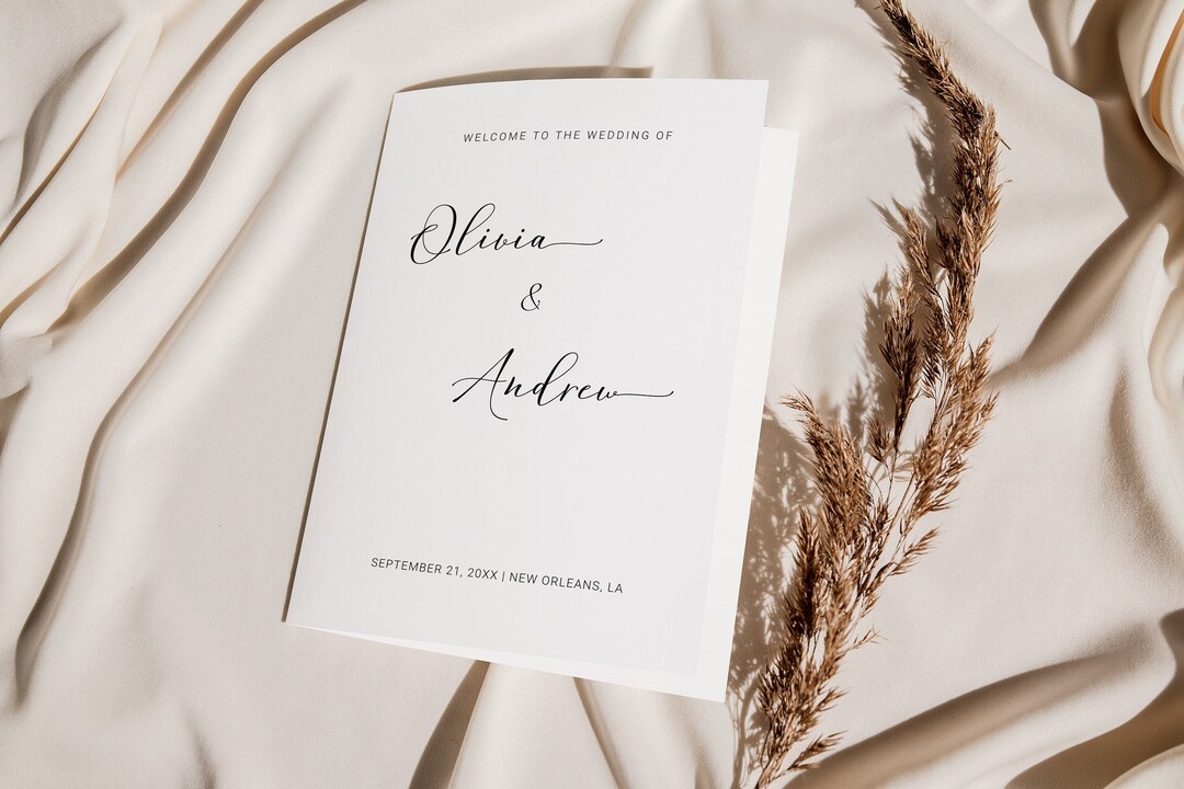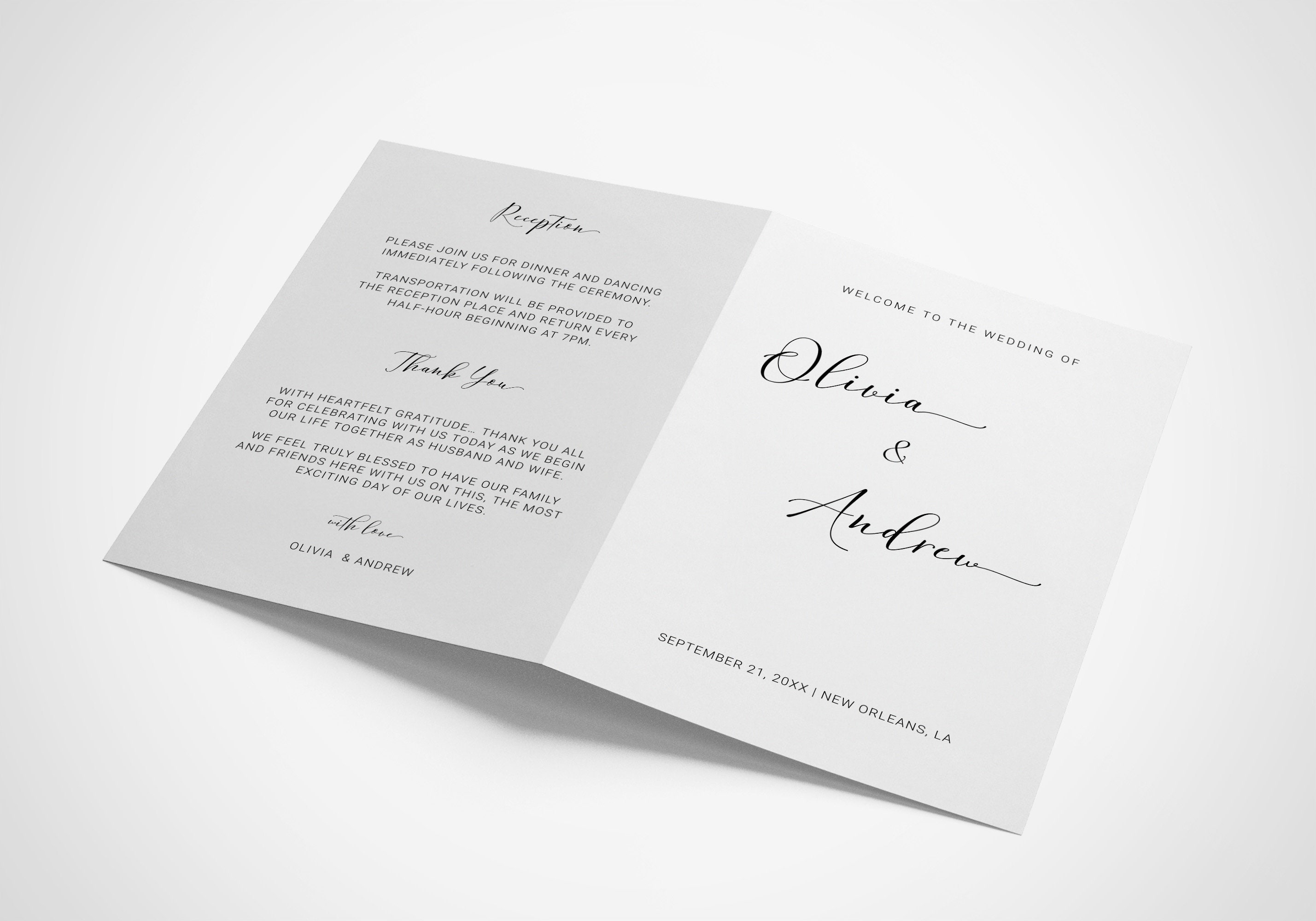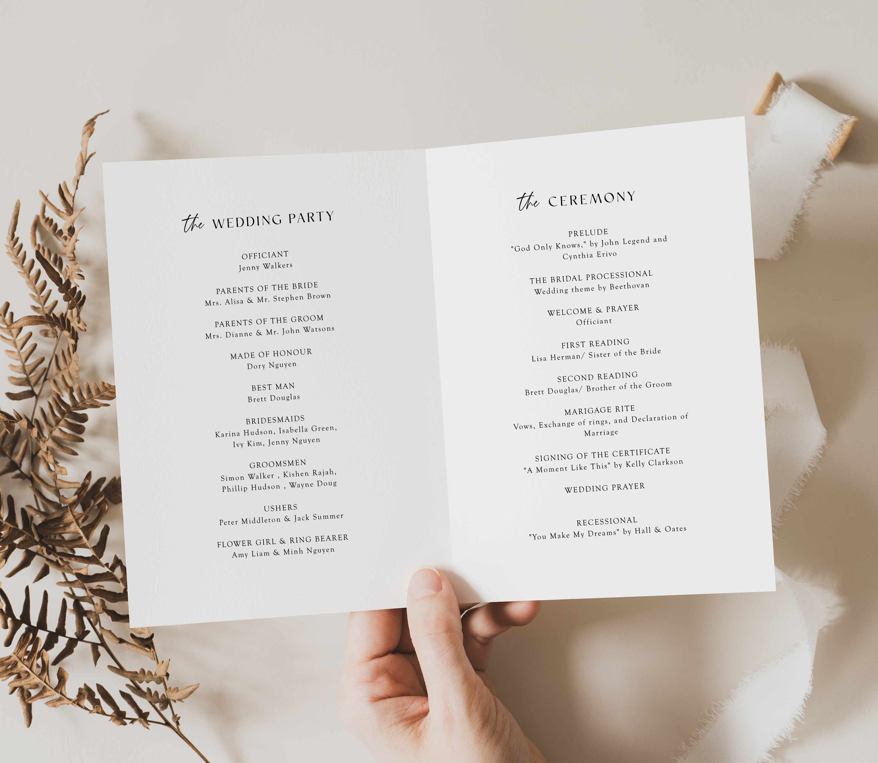 ADELLA Minimalist Foldable Wedding Program Timeline Template Modern