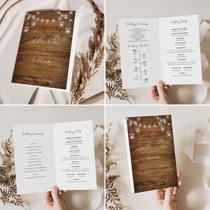 RUSTIC WOODEN Wedding Program Timeline Template Foldable Wedding