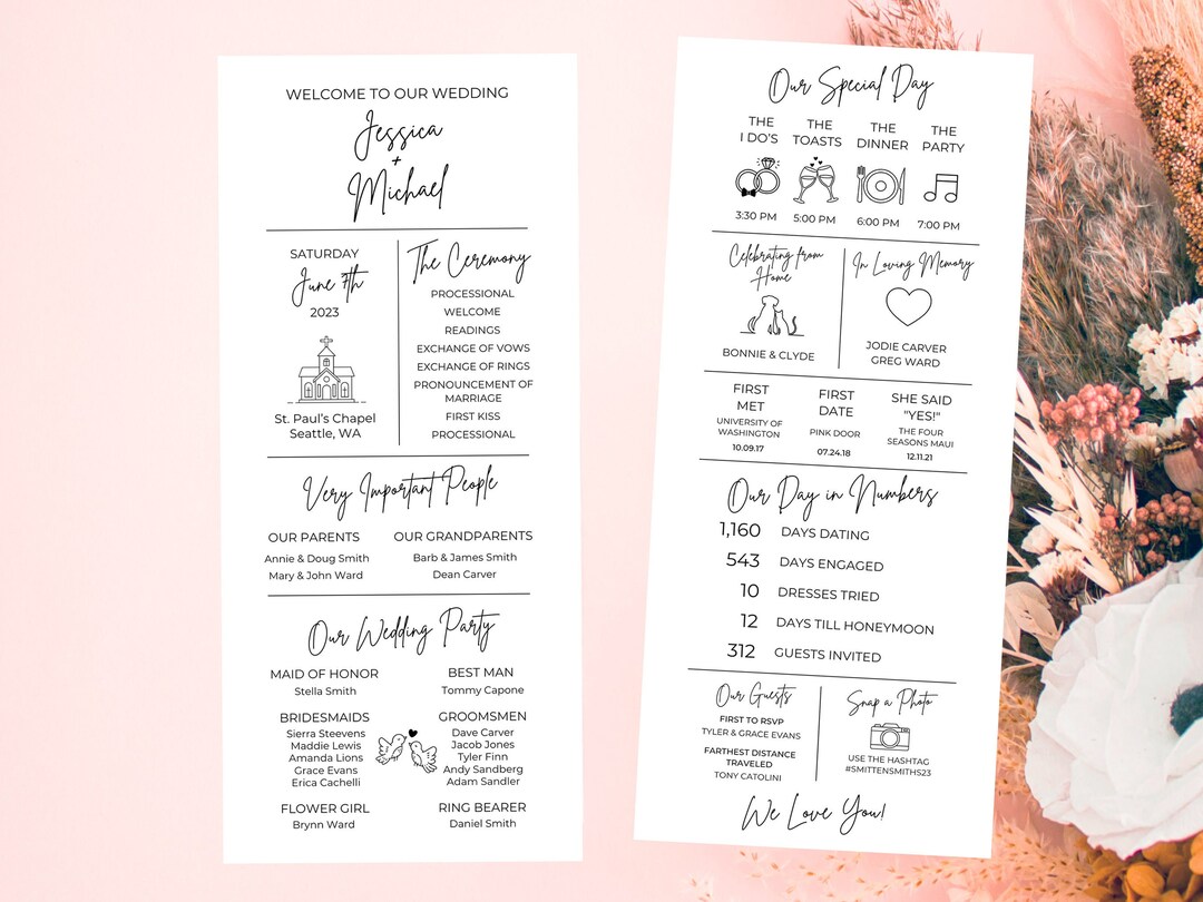 Minimal Wedding Program Timeline Template Wedding Ceremony Etsy