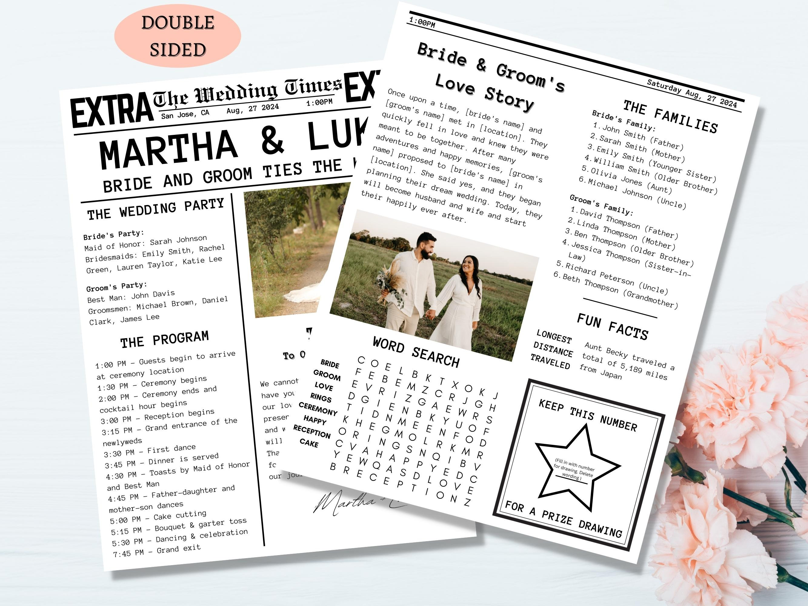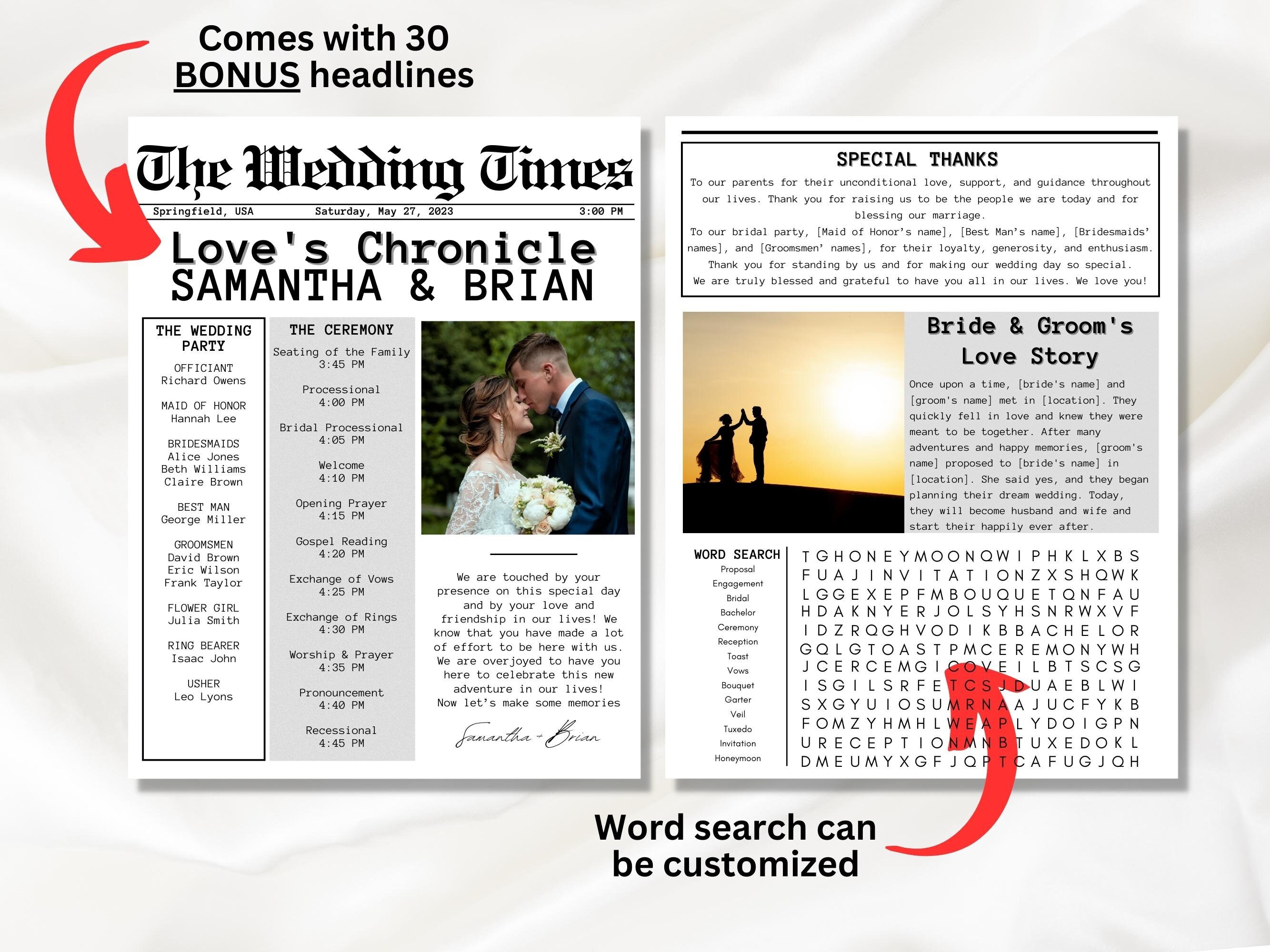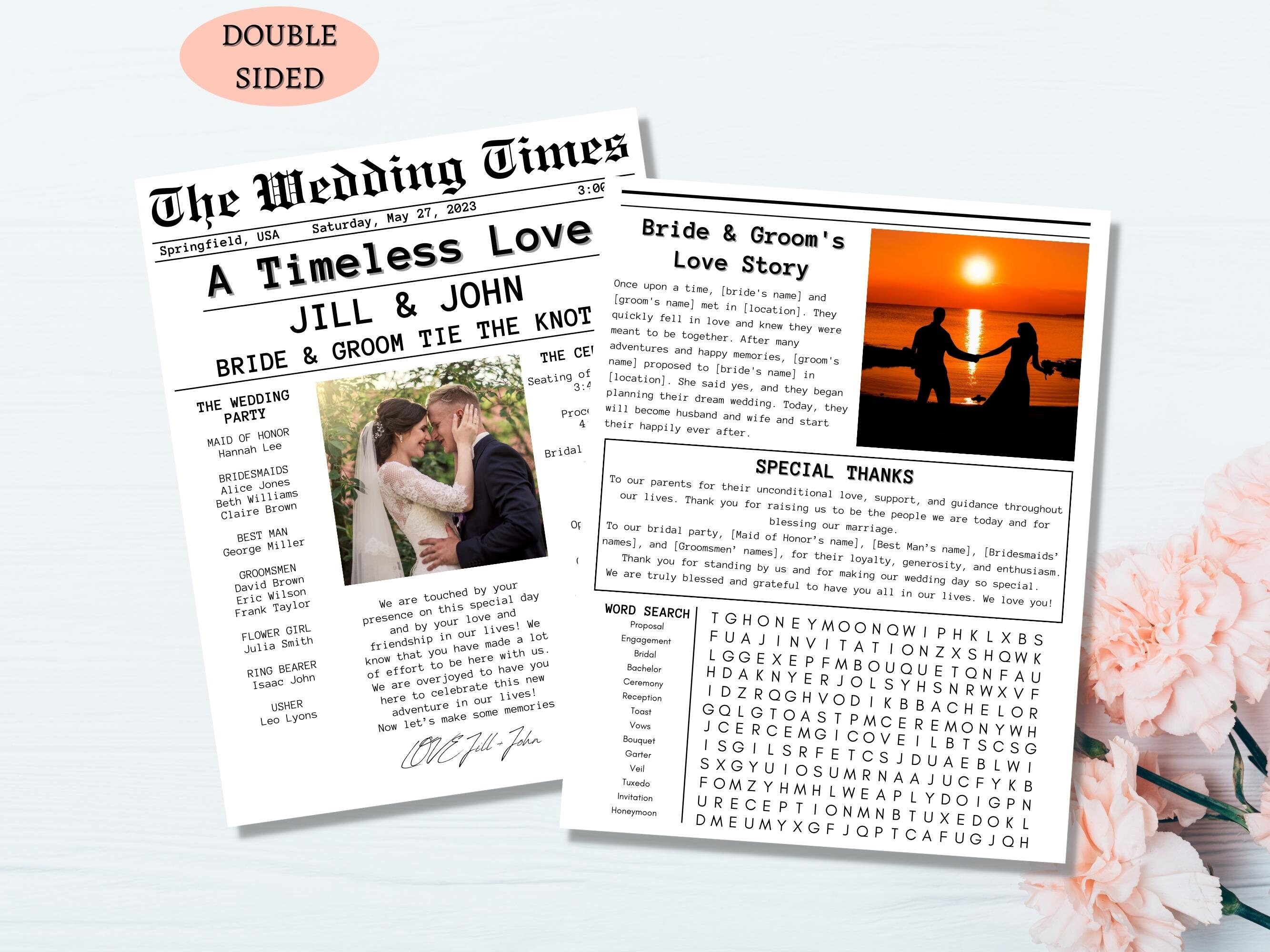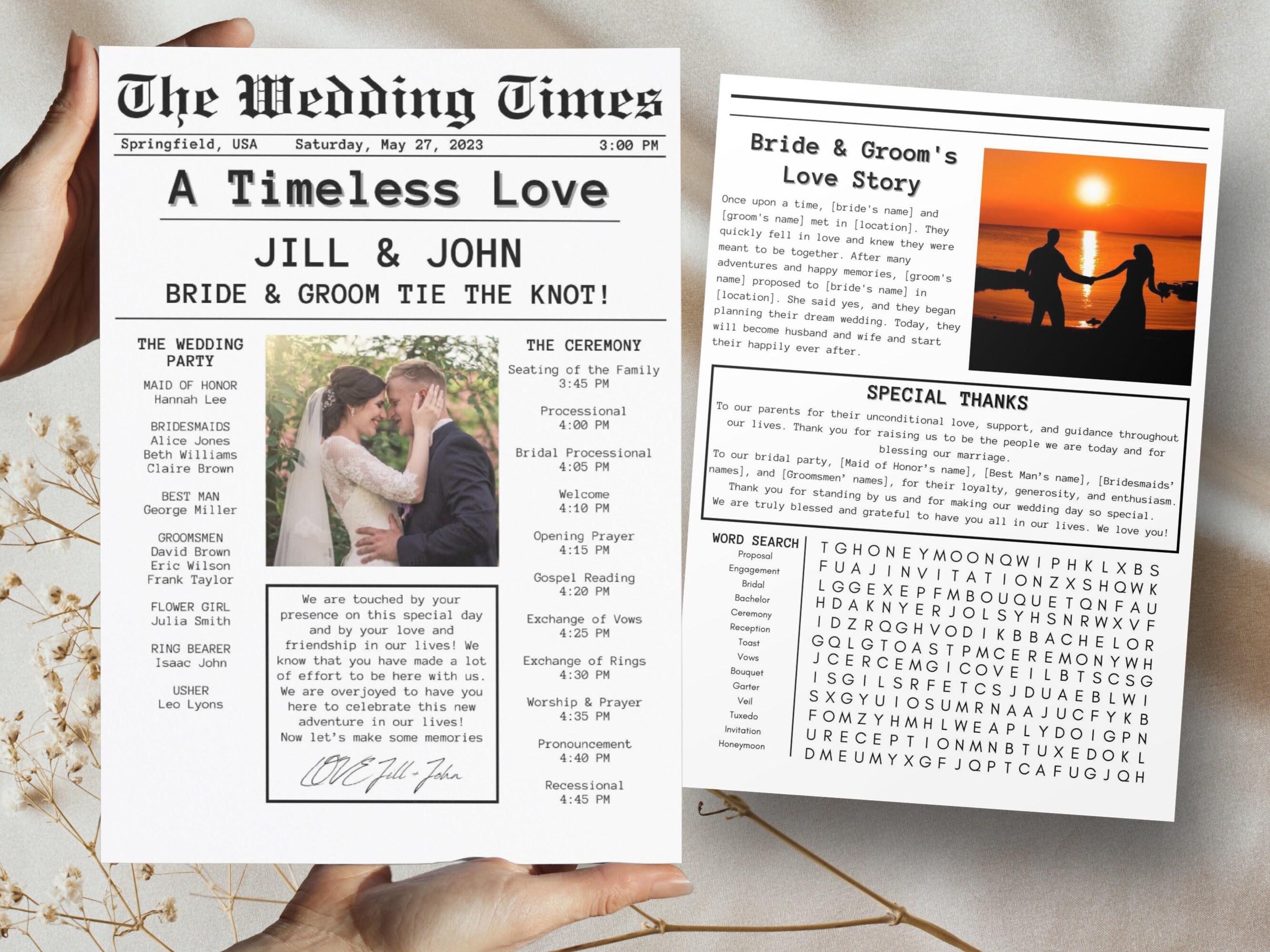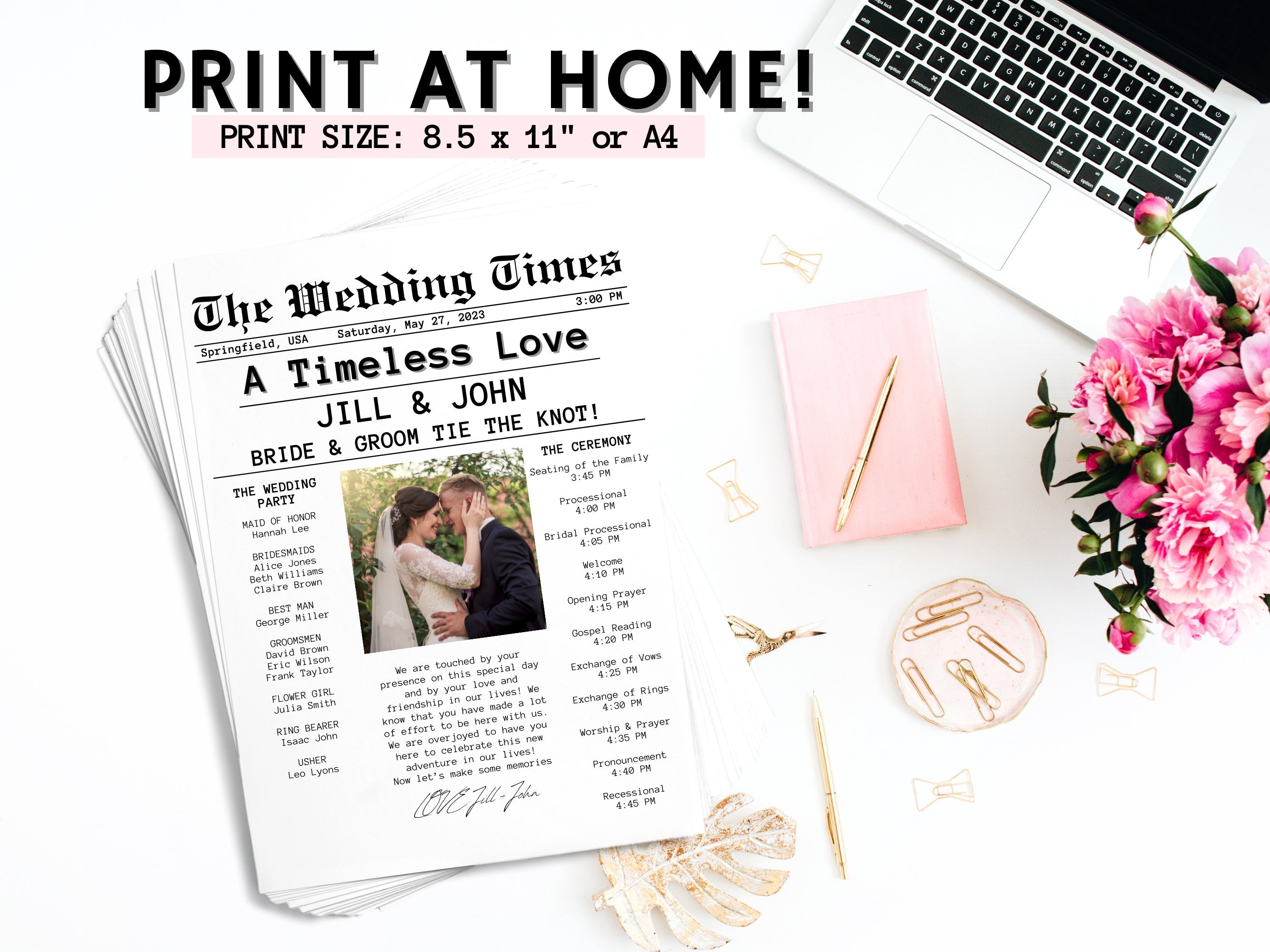 Newspaper Wedding Program Template Printable Wedding Program Timeline