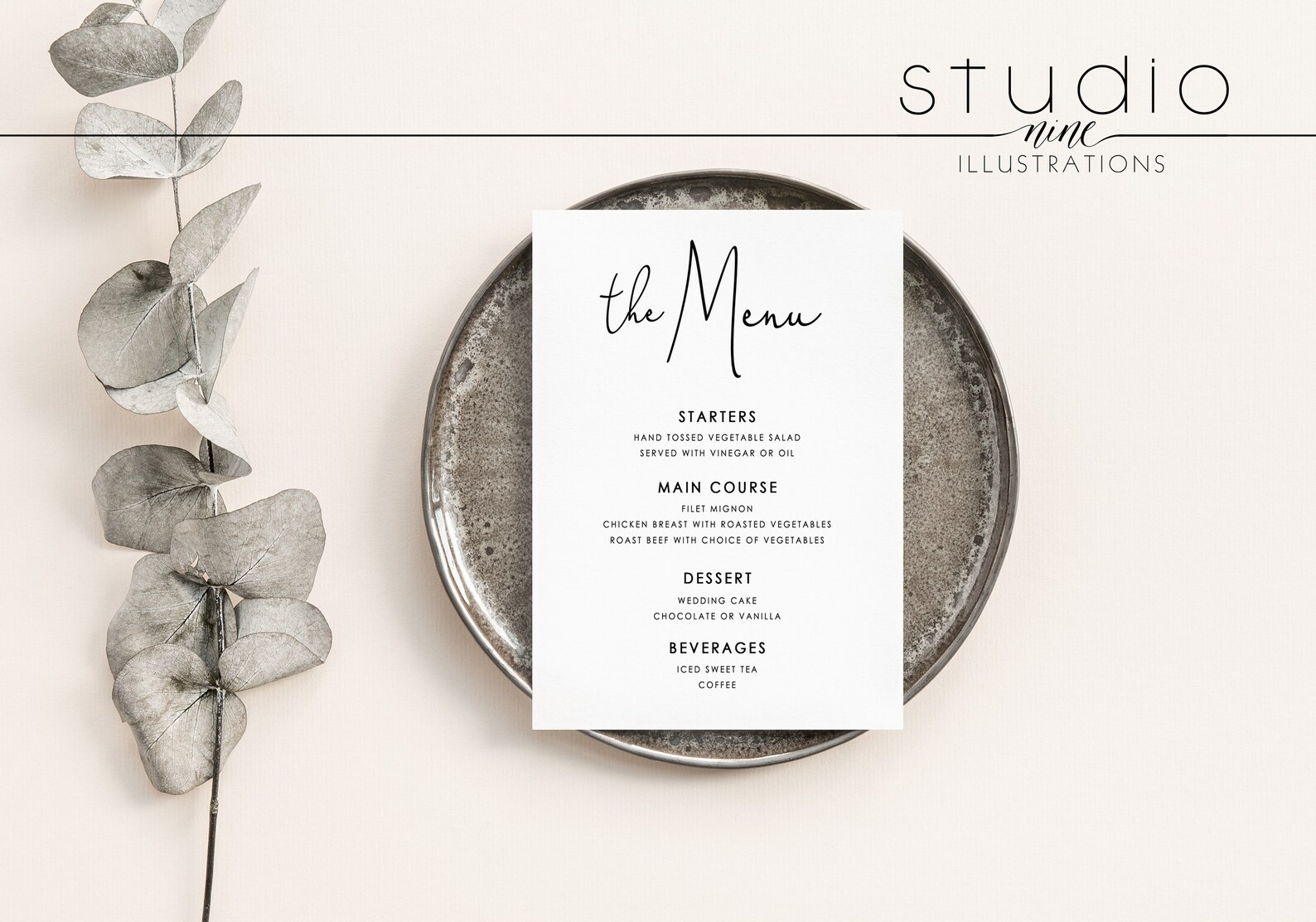 Modern Wedding Reception Menu Template Minimal Wedding Etsy