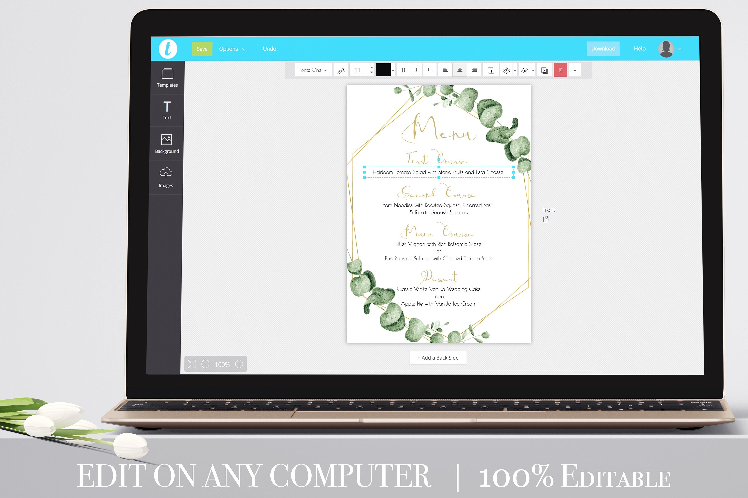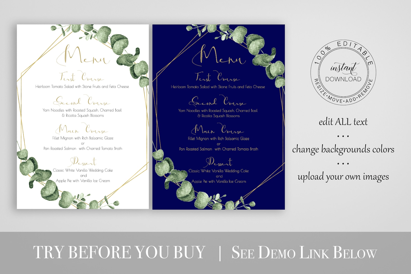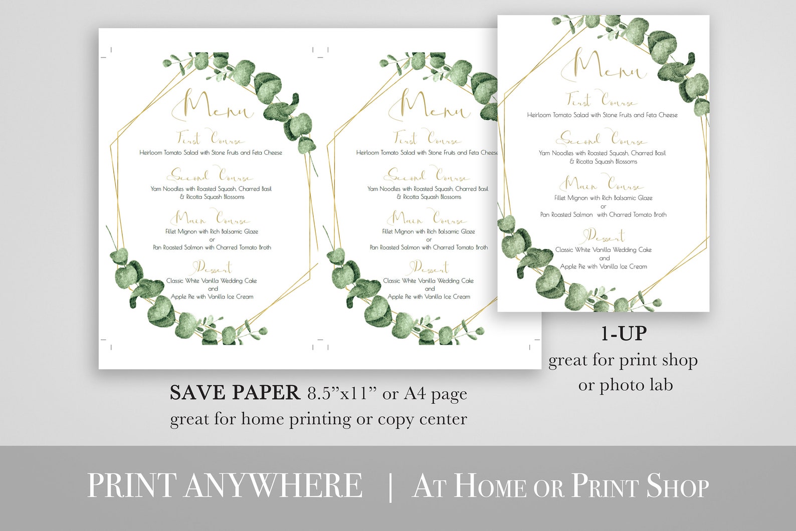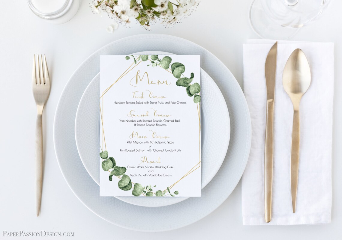 Greenery Wedding Reception Menu Template Gold Geometric Table Etsy