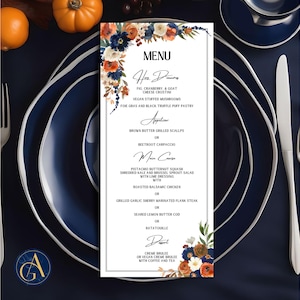 Navy and Orange Wedding Reception Menu Template Customizable Menu Canva