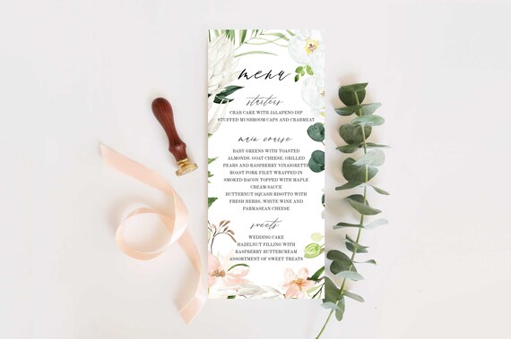 Wedding Menu Template Greenery Menu Card Menu Cards Wedding Menu