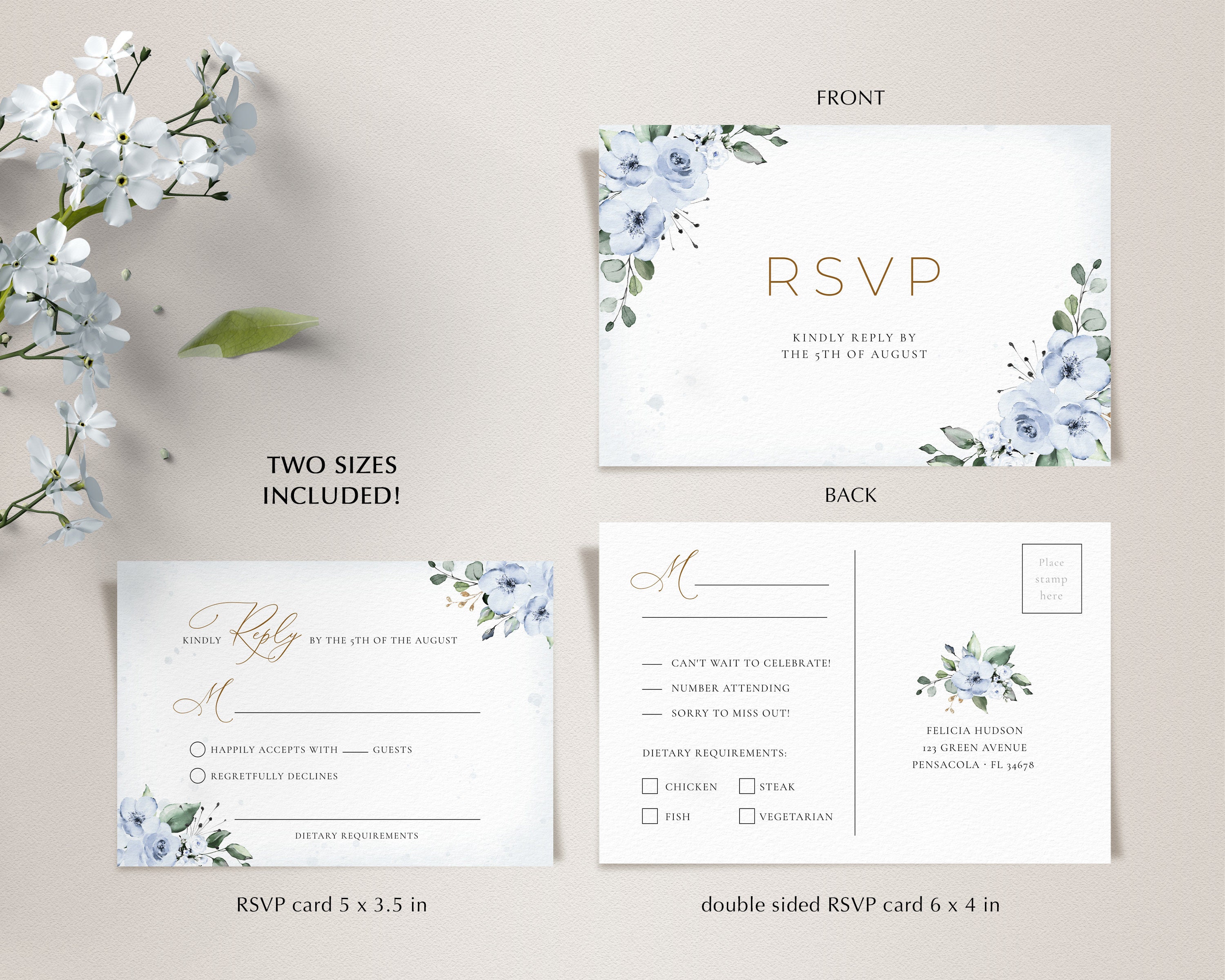 Dusty Blue RSVP Card Template Wedding Response Card Template Etsy UK