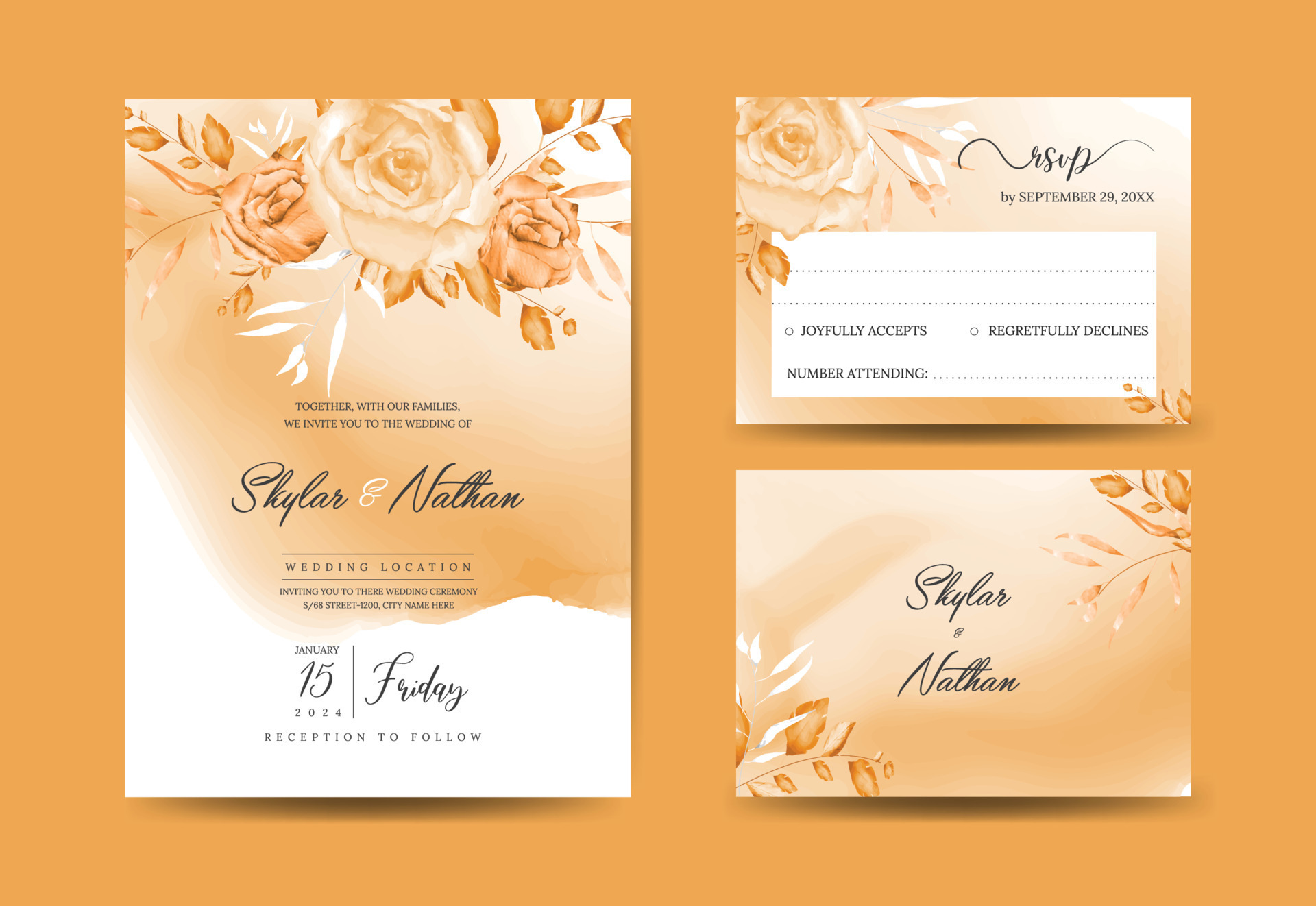 Free Vector Rose Autumn Watercolor Wedding RSVP Card template