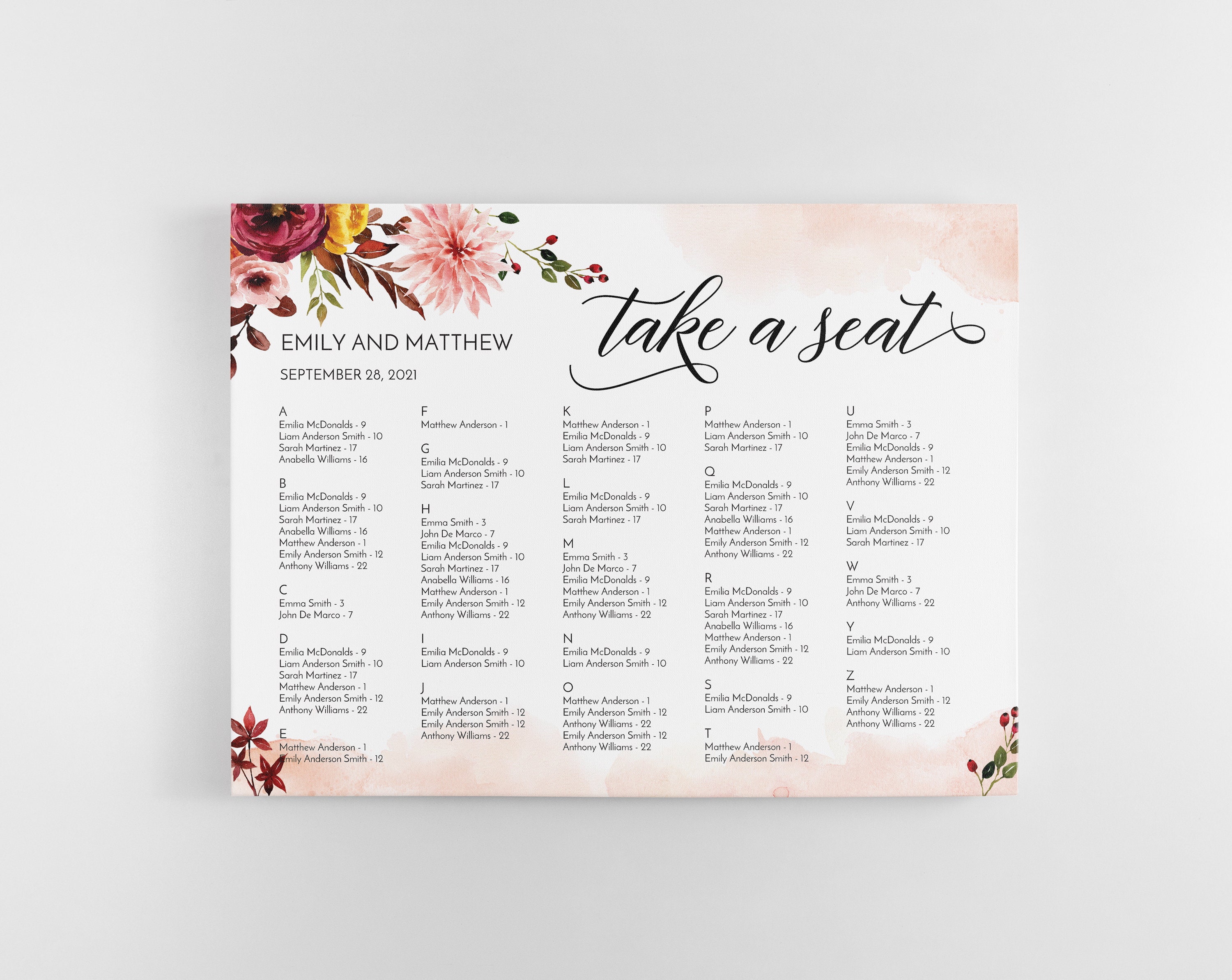 Alphabetical Seating Chart Wedding Seating Chart Template Canva