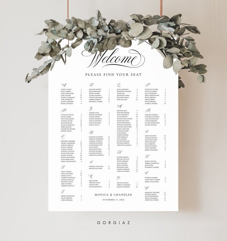 Alphabetical Wedding Seating Chart Editable Minimalist Printable