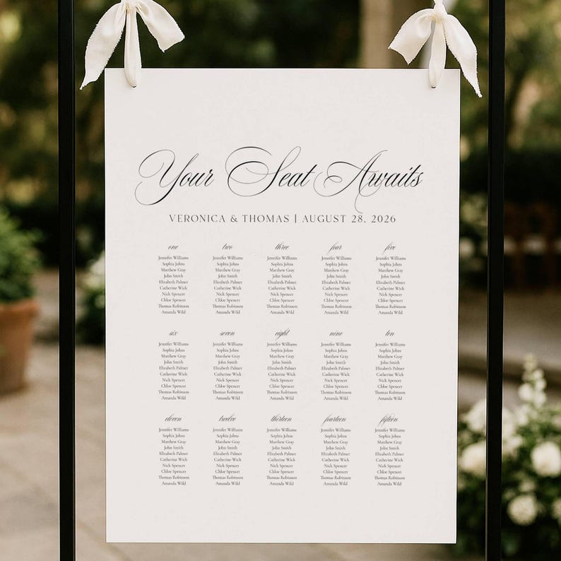 Classic Wedding Seating Chart Template Printable Elegant Seating