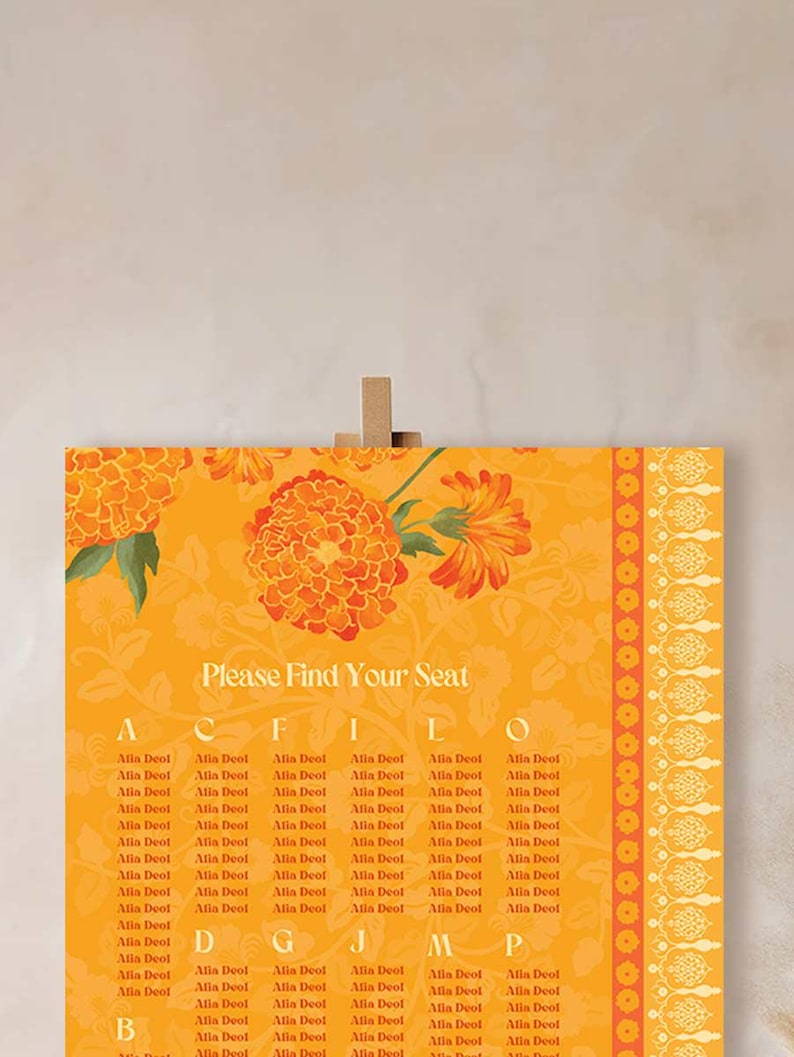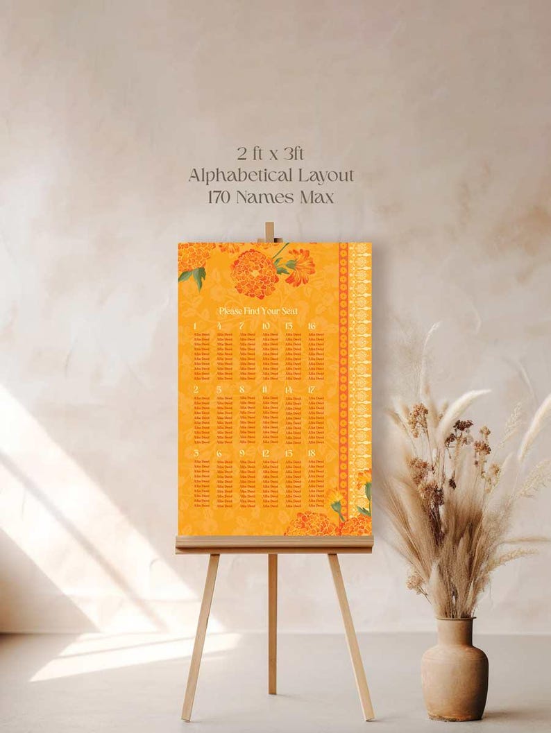 Marigold Floral Seating Chart: Wedding Sign Template (digital Download